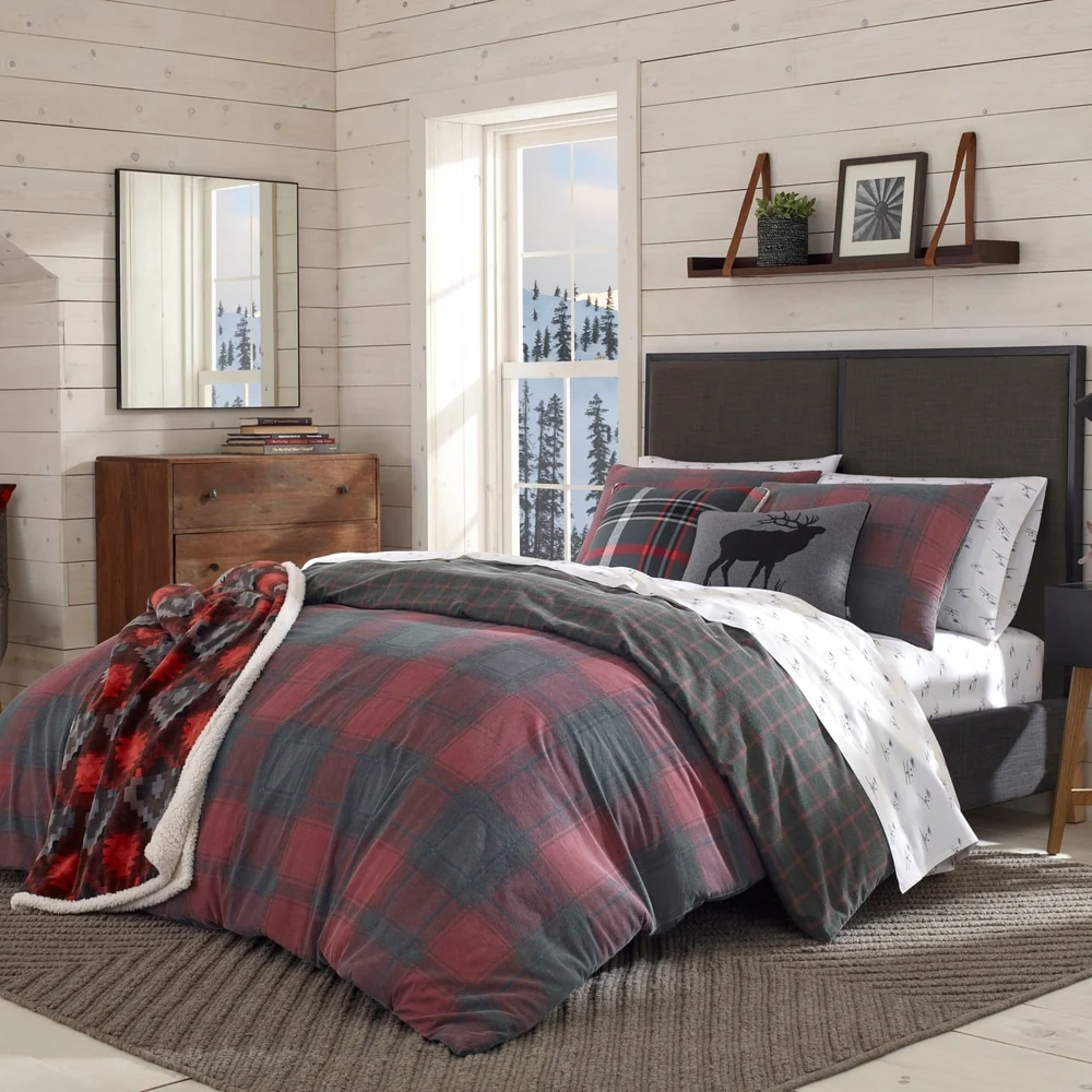 Eddie Bauer Cattle River Plaid Red Duvet Cover Set