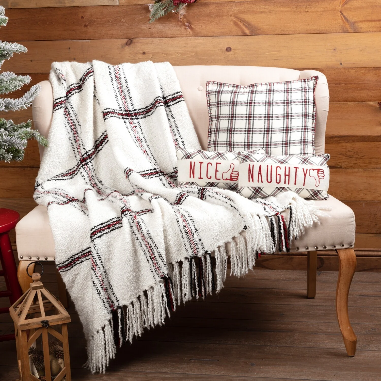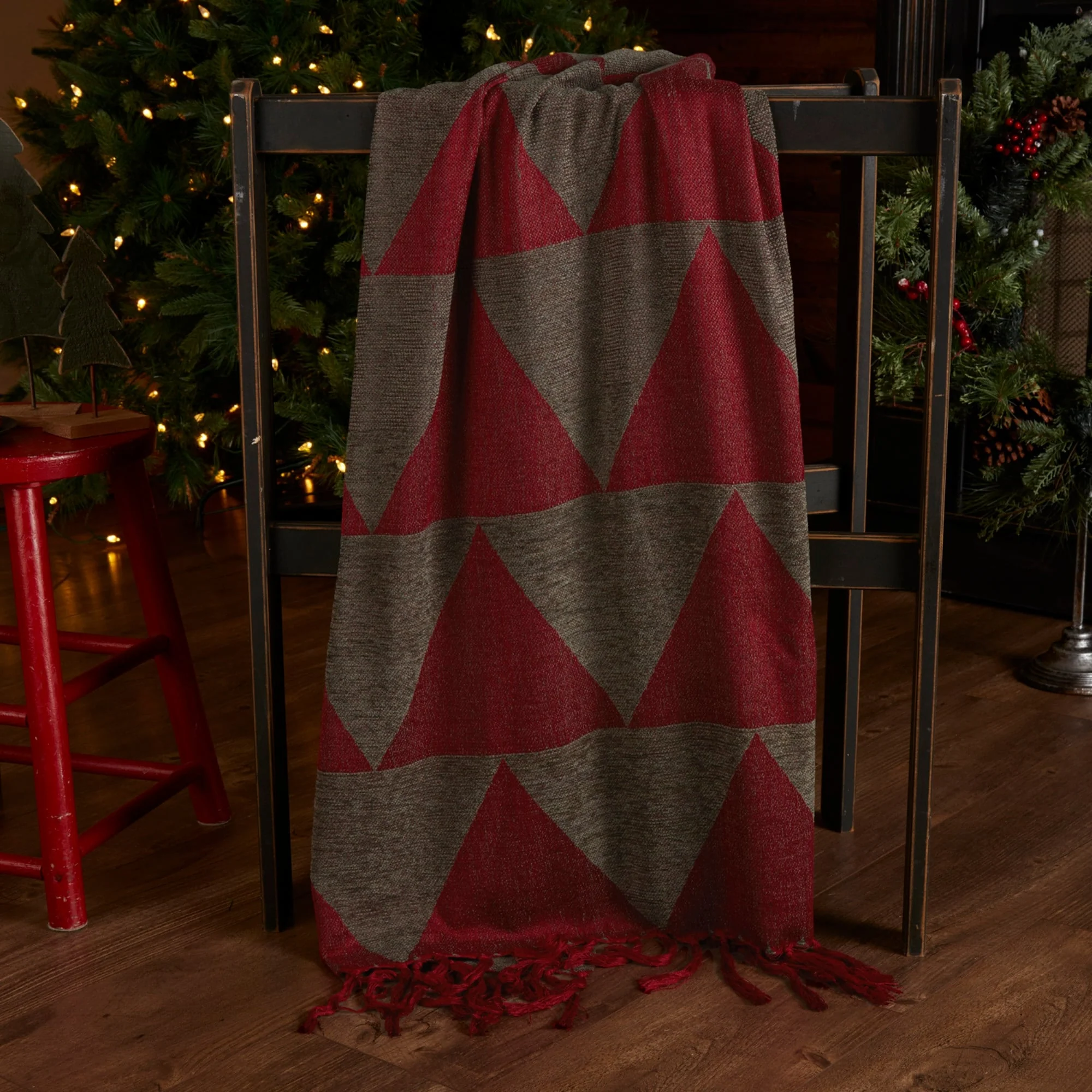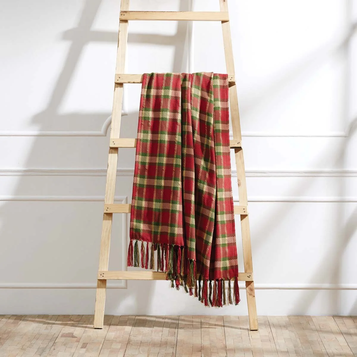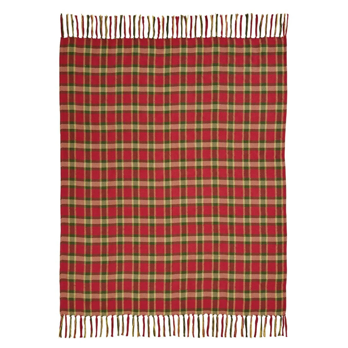 Red Rustic Christmas Holiday Decor VHC Claren Throw Cotton Plaid Knotted Tassels