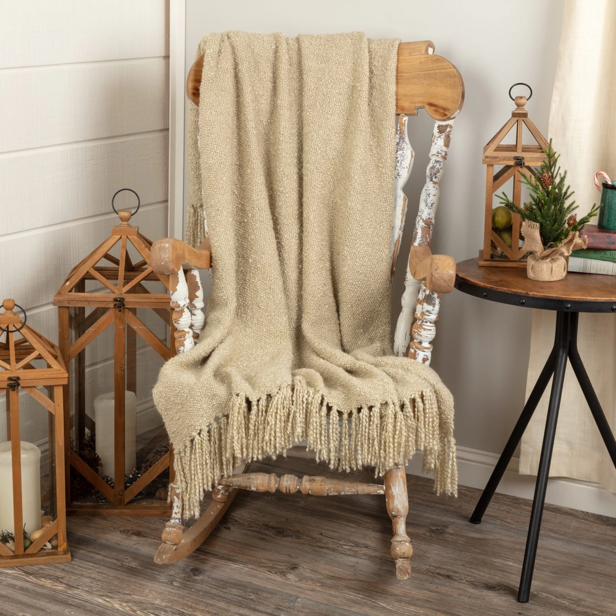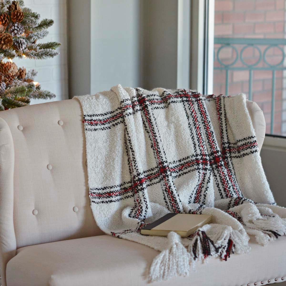 VHC Amory Throw Acrylic Plaid Knotted Tassels Textured
