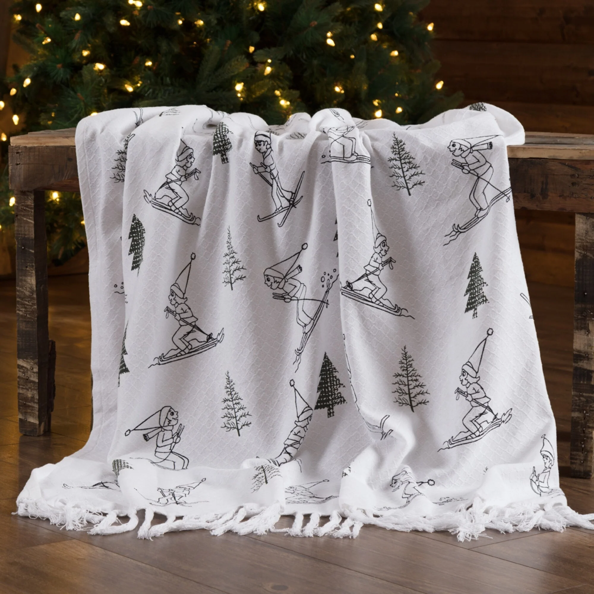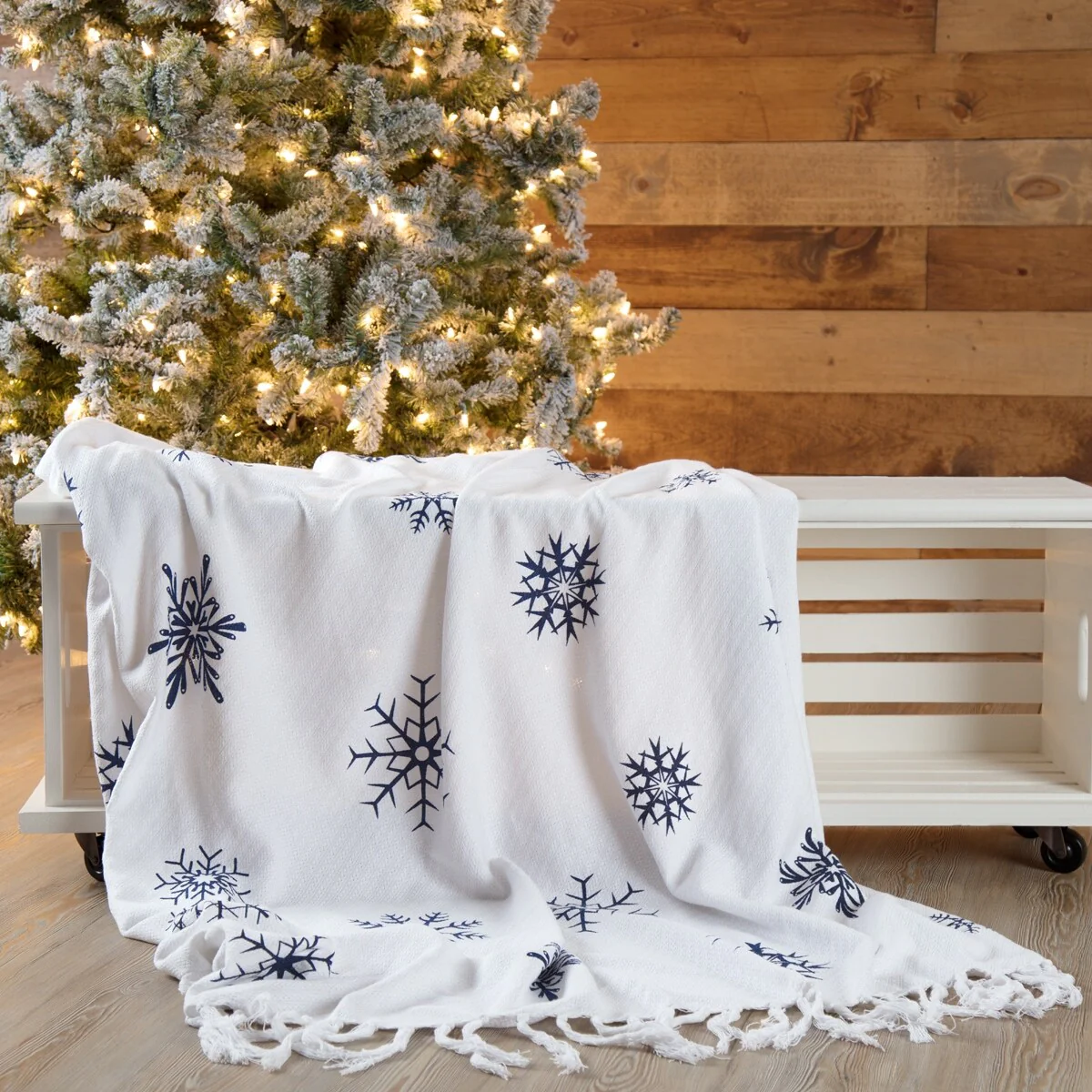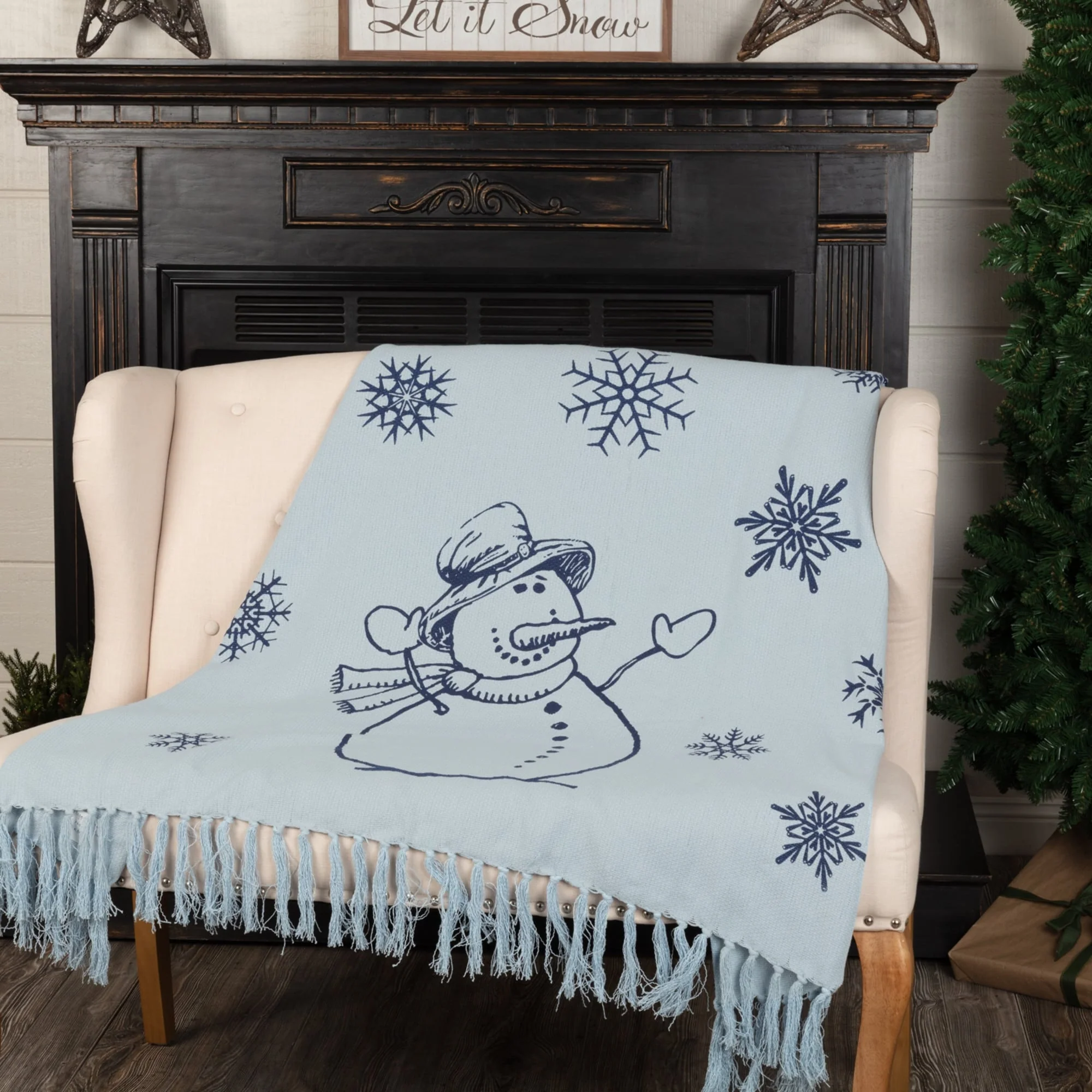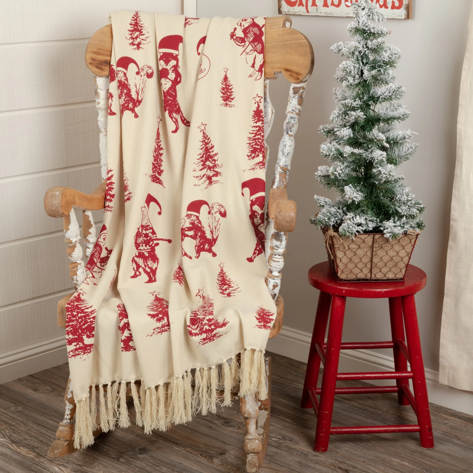 White Farmhouse Christmas Holiday Decor VHC Winter Morning Throw Cotton Nature Print Stenciled