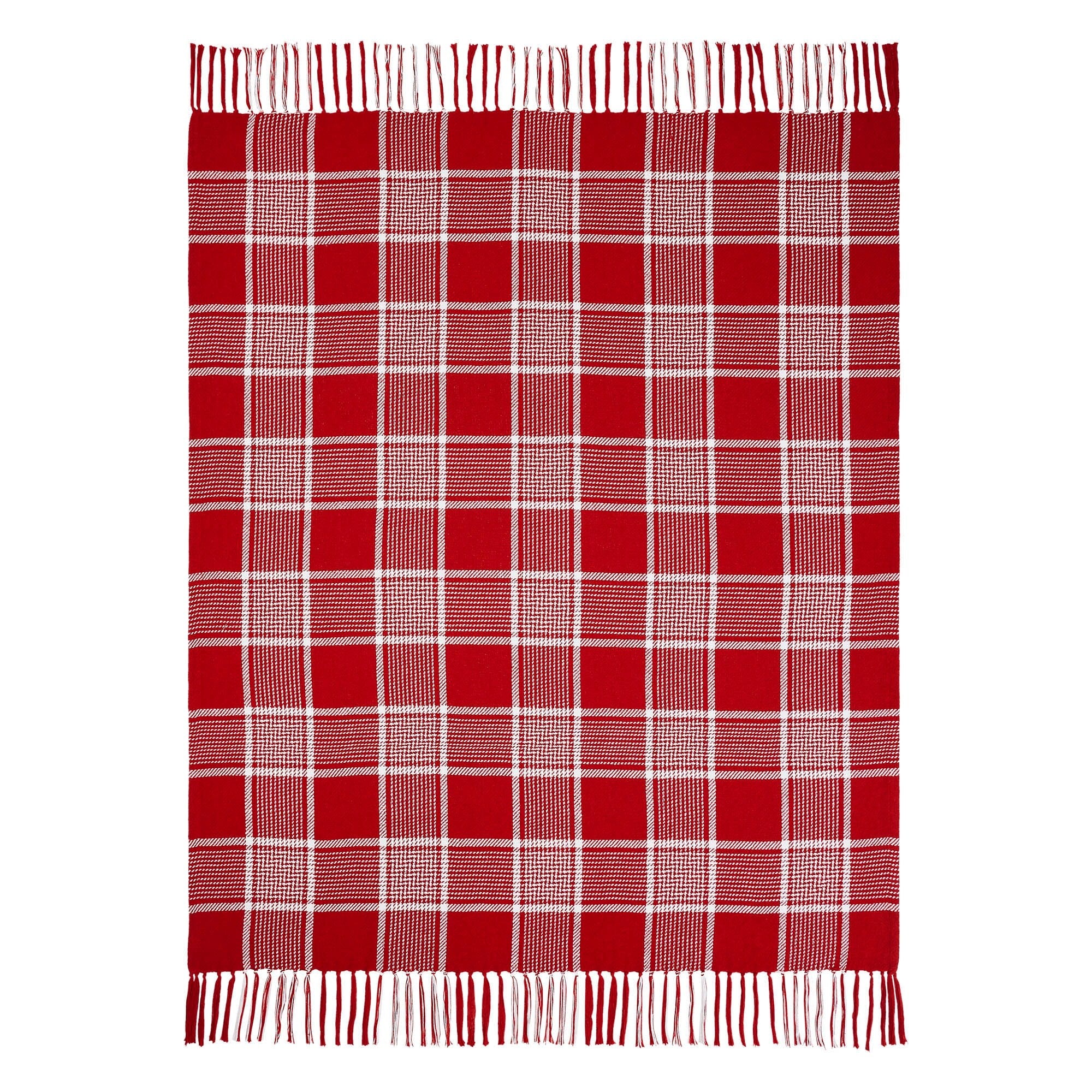 Eston Red White Plaid Woven Throw 50x60