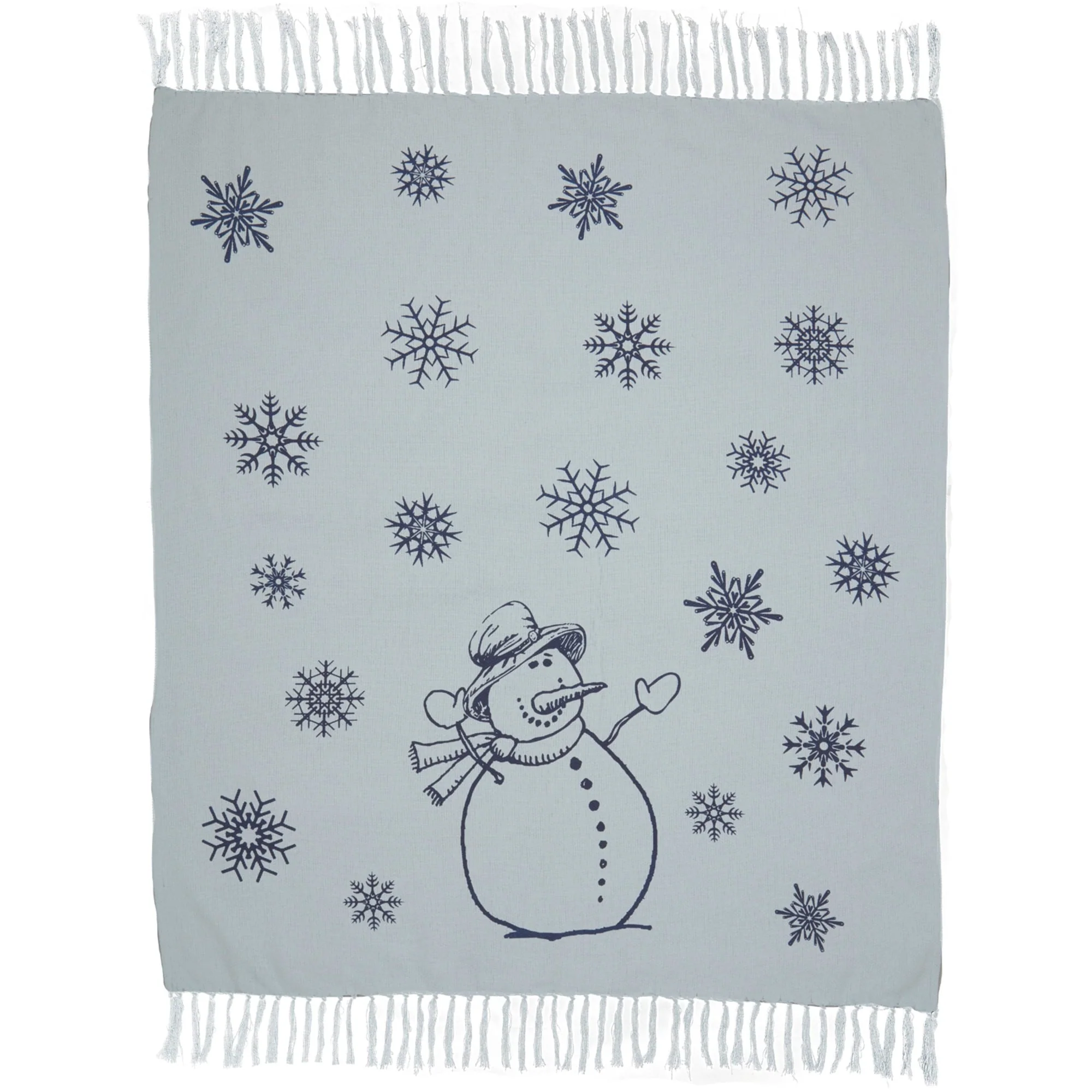 Happy Snowman Navy on Blue Woven Throw 60x50