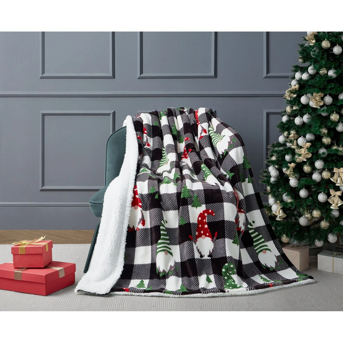 Hanging with my Gnomie Plaid Microplush to Sherpa Throw