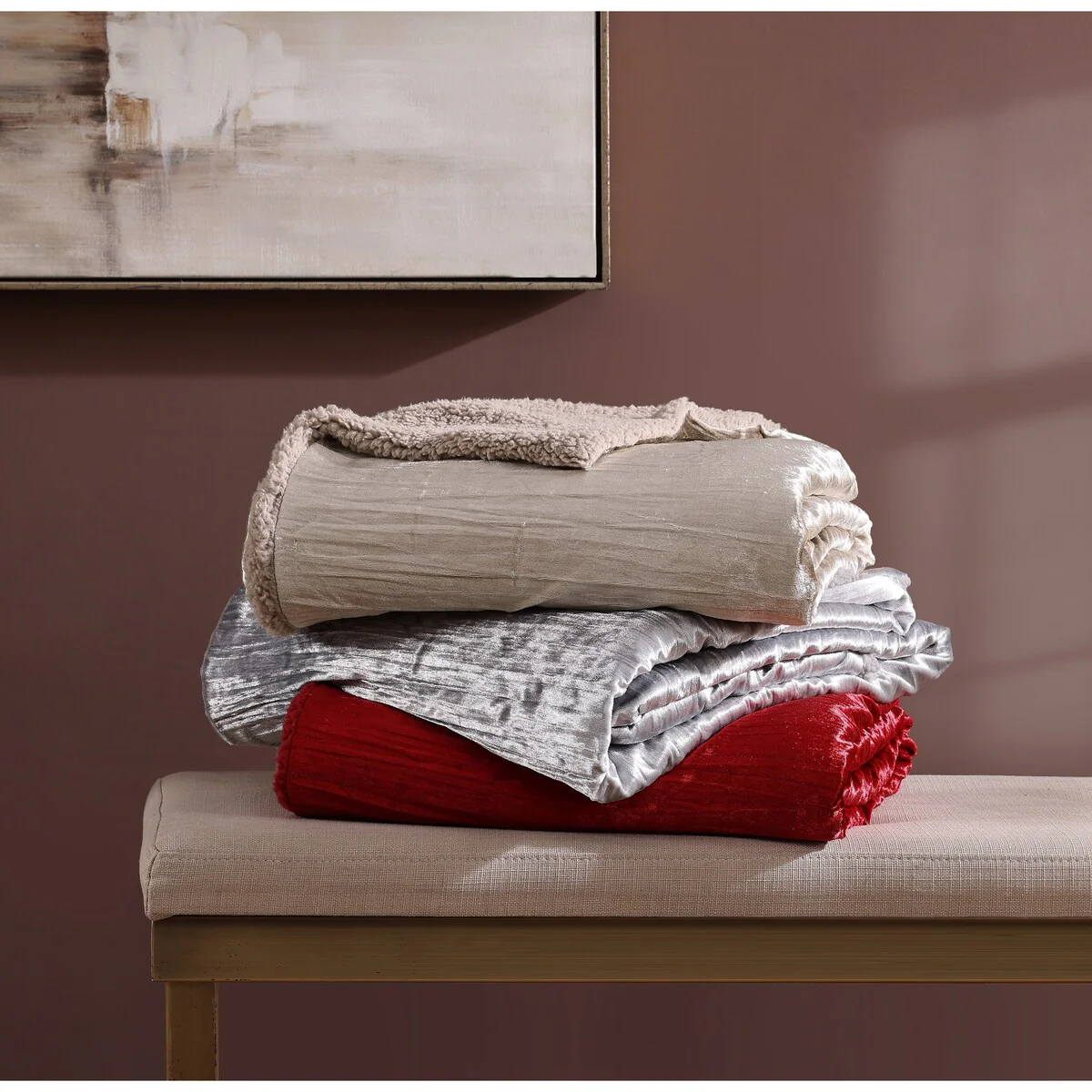 Traditional/Country/Rustic/Modern & Contemporary/Mid-Century Modern - Red - Nature/Striped - King - 3 Piece