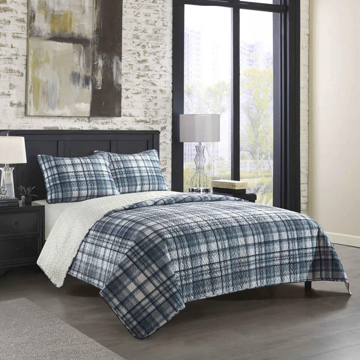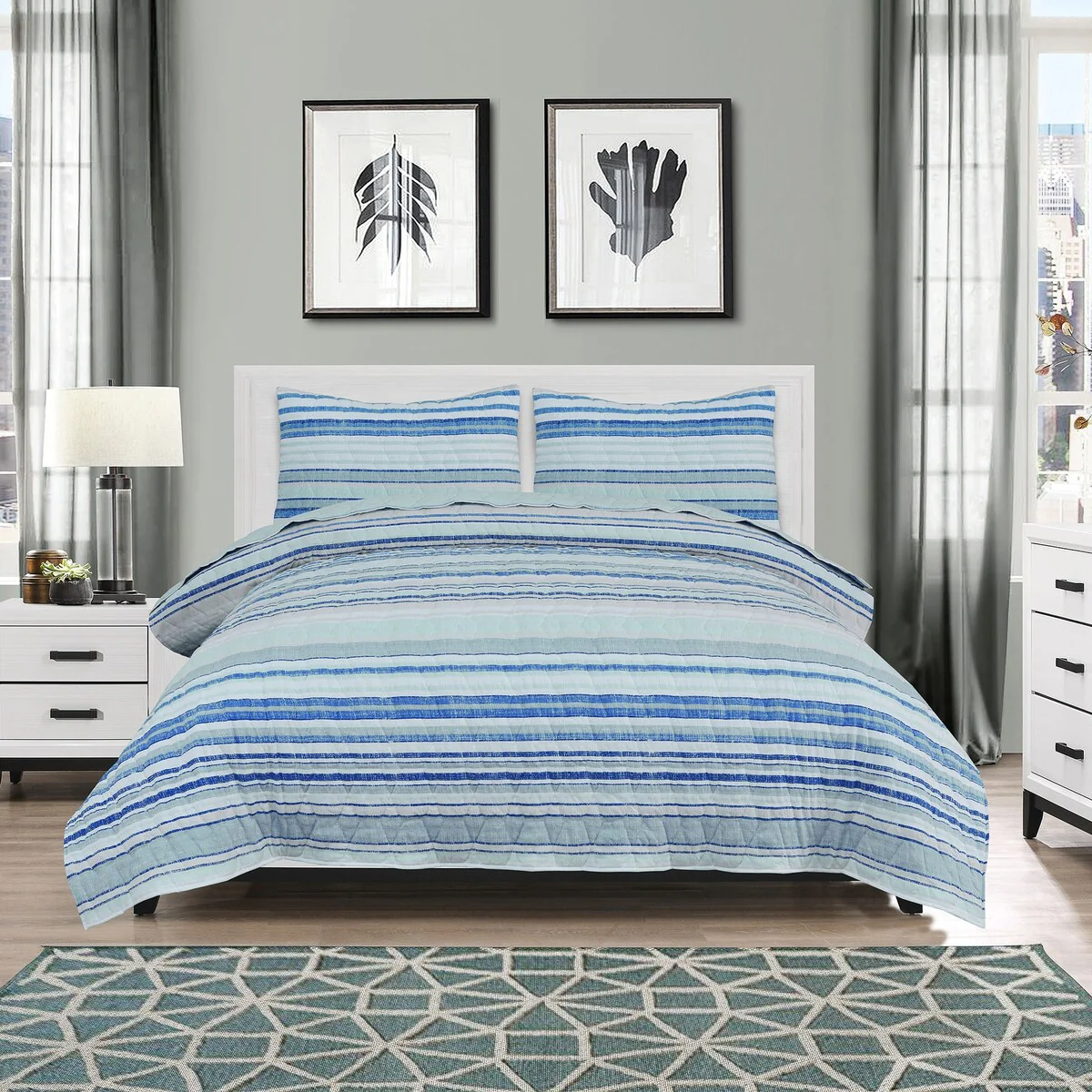 Traditional/Country/Rustic/Modern & Contemporary/Mid-Century Modern - Aqua - Striped - King - 3 Piece - Button