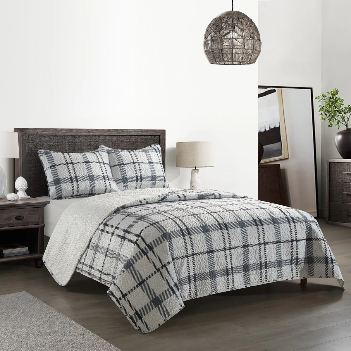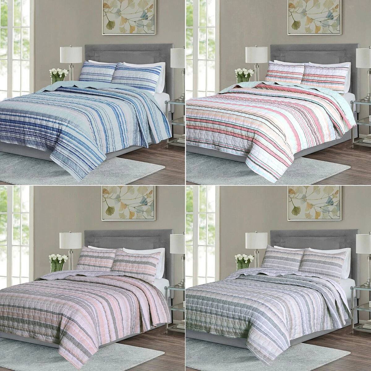 Traditional/Country/Rustic/Modern & Contemporary/Mid-Century Modern - Multi - Striped - King - 3 Piece - Button