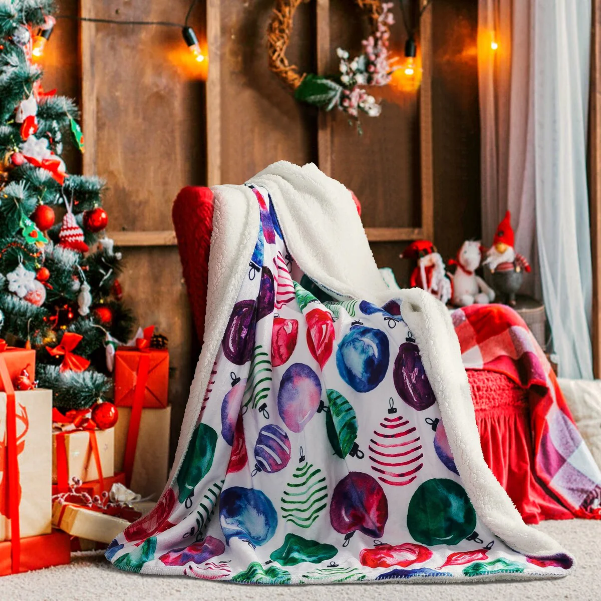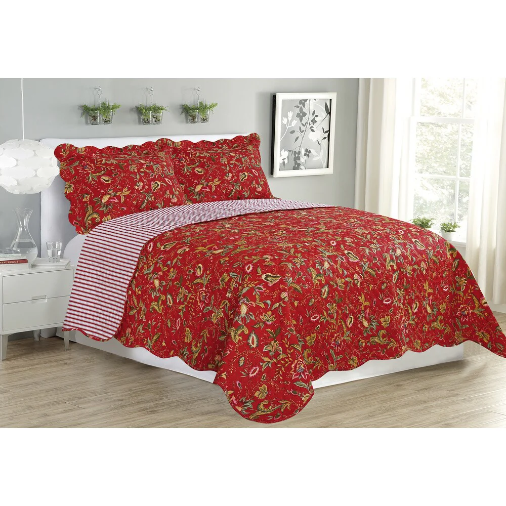 Traditional - Red - Striped - Full - Queen - 3 Piece - Button