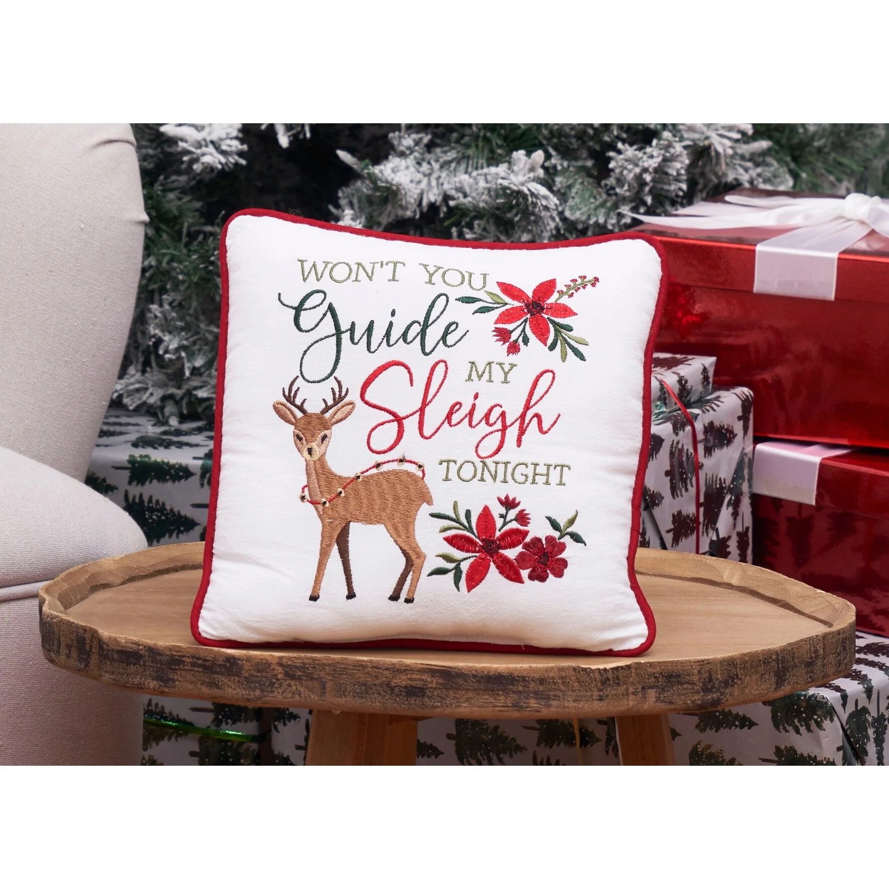 10" x 10" Guide My Sleigh Small Christmas Accent Pillow
