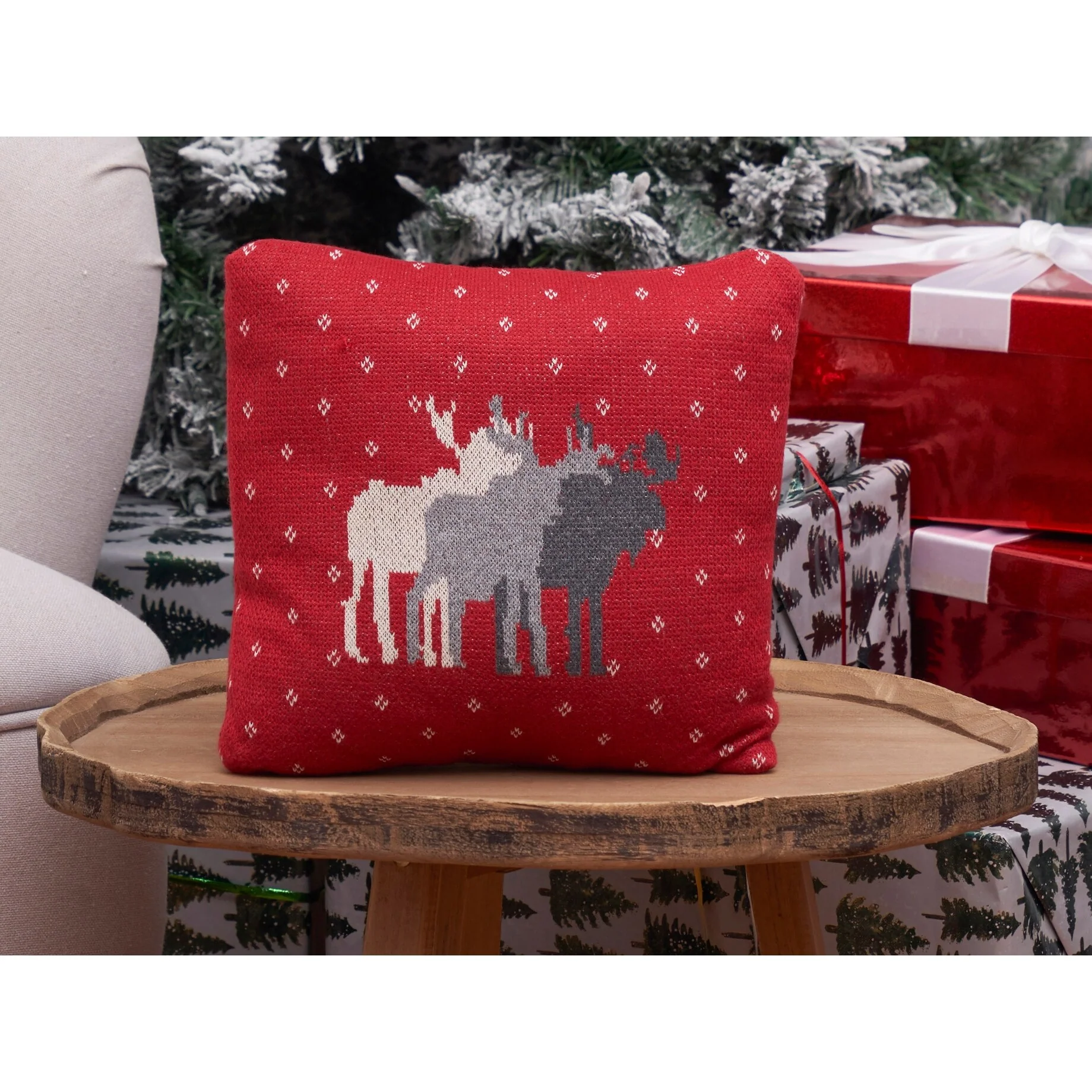 Spread some holiday cheer with this knit pillow. A cozy weave texture feeling on pillows is great too! Traditional winter American motifs embrace our knitted pillows visual designs for this year’s collection. This mini pillow is perfect for gifting and will get your loved ones into the winter Christmas spirit.