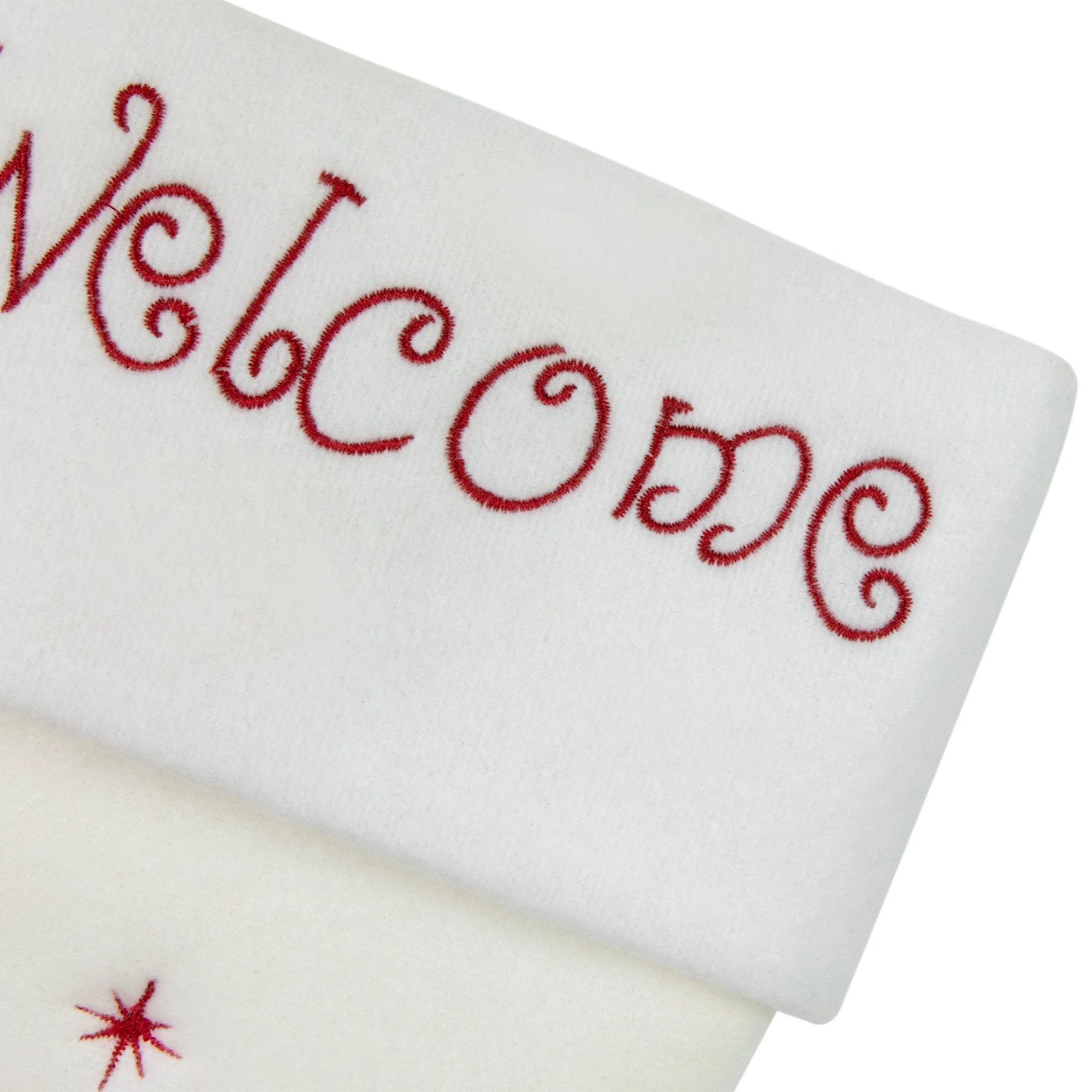 Ready for the festive season? This Christmas stocking will add the final touches! Embroidered with the word "Welcome" on the cuff, this stocking will become a long-lasting decoration. Your mantel would be more than happy to welcome this!