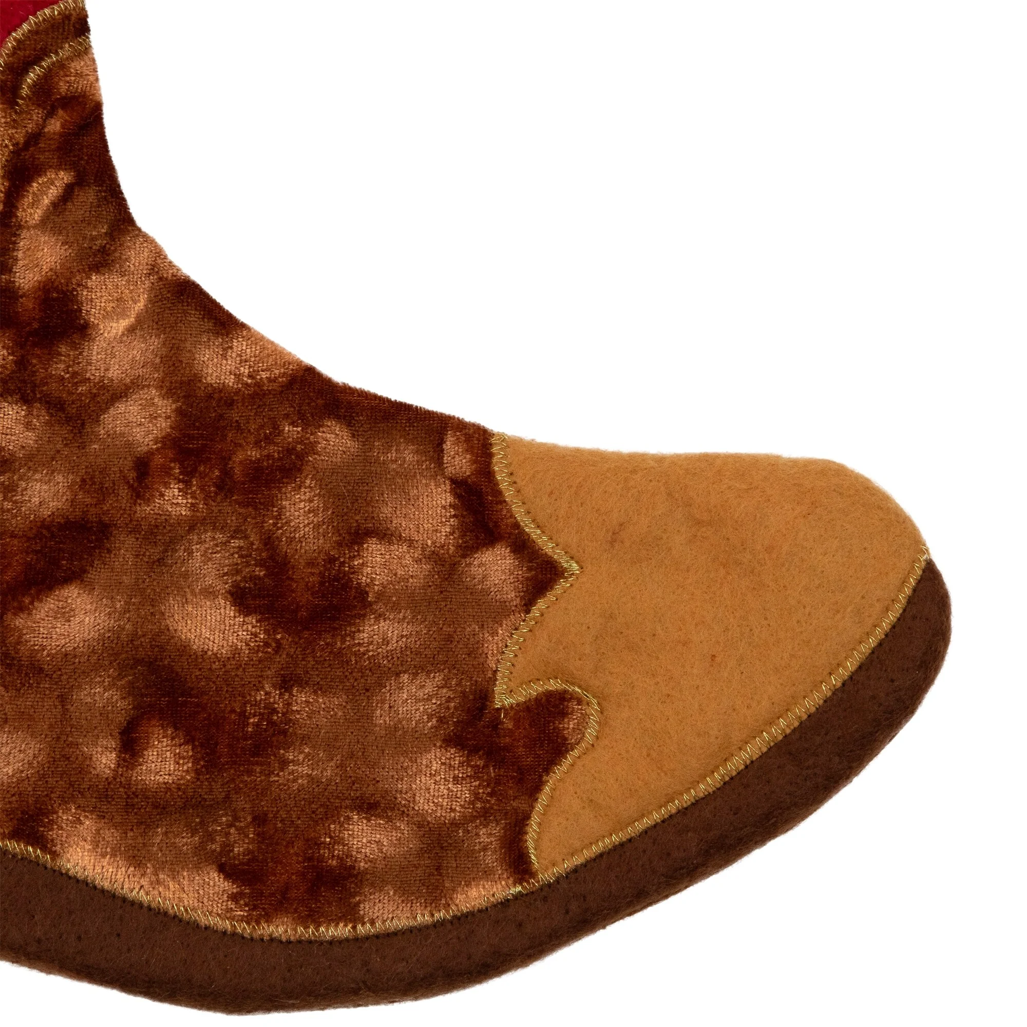Cowboy boot shaped brown shadow velveteen with fleece backing