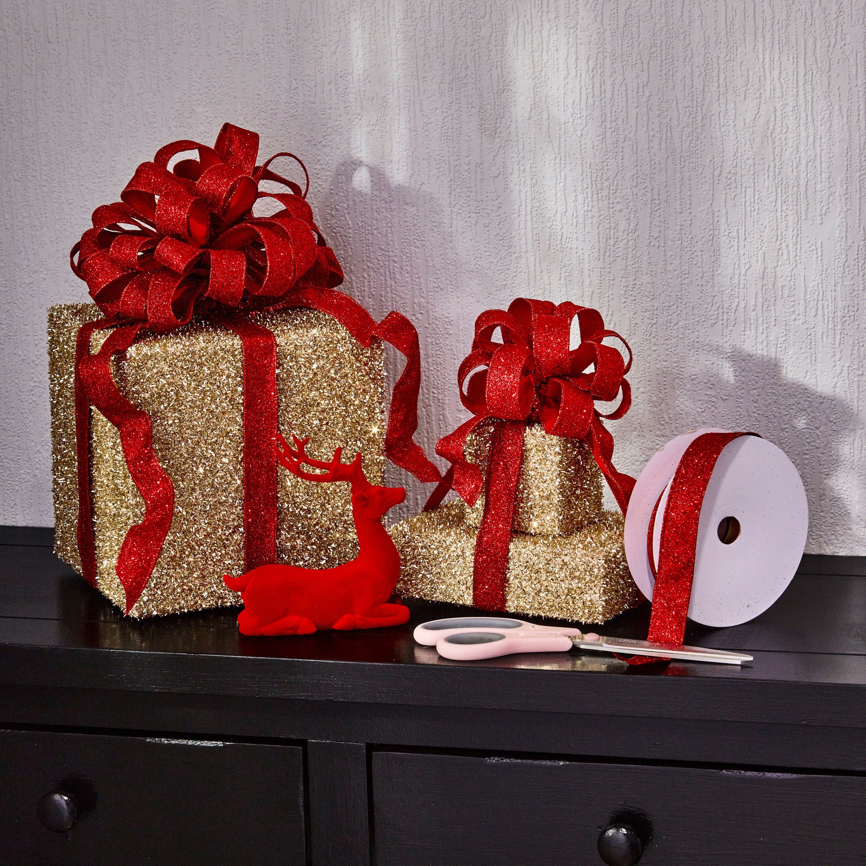 Elevate your gift wrapping, crafts, and holiday decorations with the luxurious 1" x 20Y Wired Glitter Satin Ribbon. This stunning ribbon combines the elegance of satin with the sparkle of glitter, creating a beautiful, eye-catching effect that's perfect for adding a festive touch to any project. The wired edges allow for easy shaping, ensuring your bows, wreaths, and other decorative elements hold their form with style. Whether you're wrapping presents, enhancing floral arrangements, or creating custom decorations, this ribbon adds a touch of glamour and sophistication. The 20-yard spool ensures you'll have plenty of material for multiple projects, making it a versatile addition to your crafting supplies. High-quality ribbon proudly made in Taiwan.