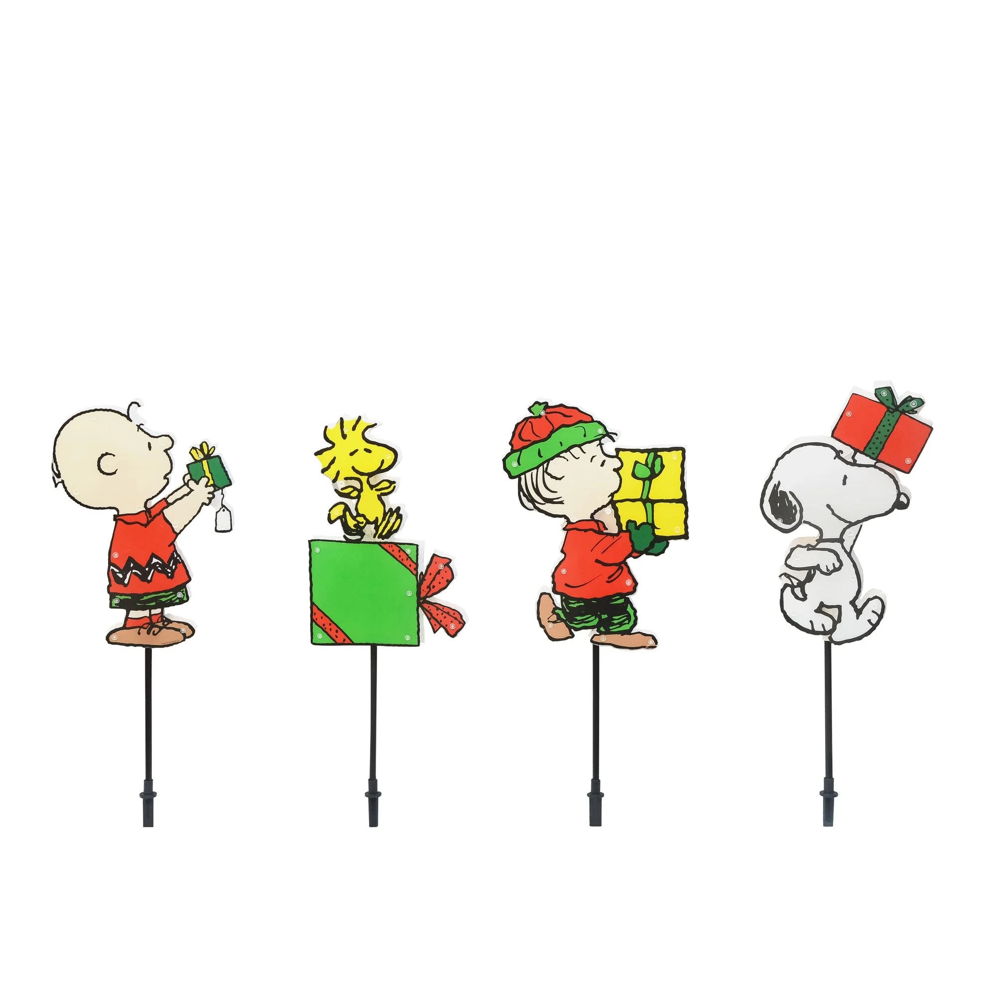 Peanuts the Gift of Giving pathway markers are a bright delight to see during the holiday Christmas season Each lit with 10 LED lights they illuminate the walk way or porch beautifully. Welcome your guests family and friends to your home with the 12 in icon colorful Peanuts favorites.