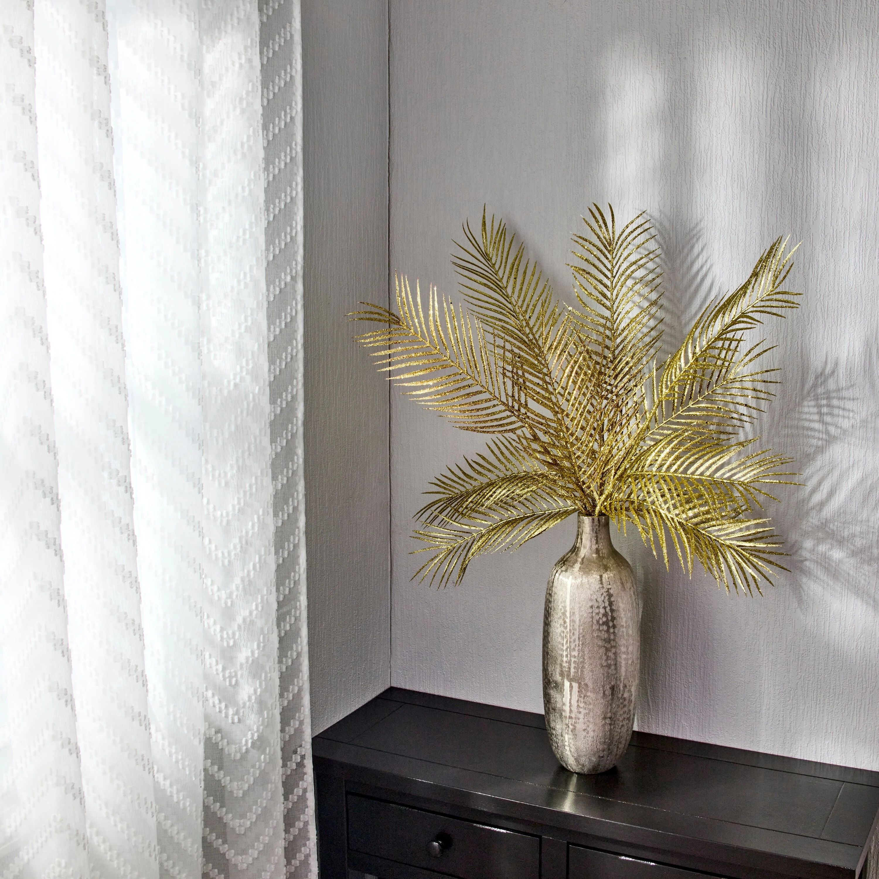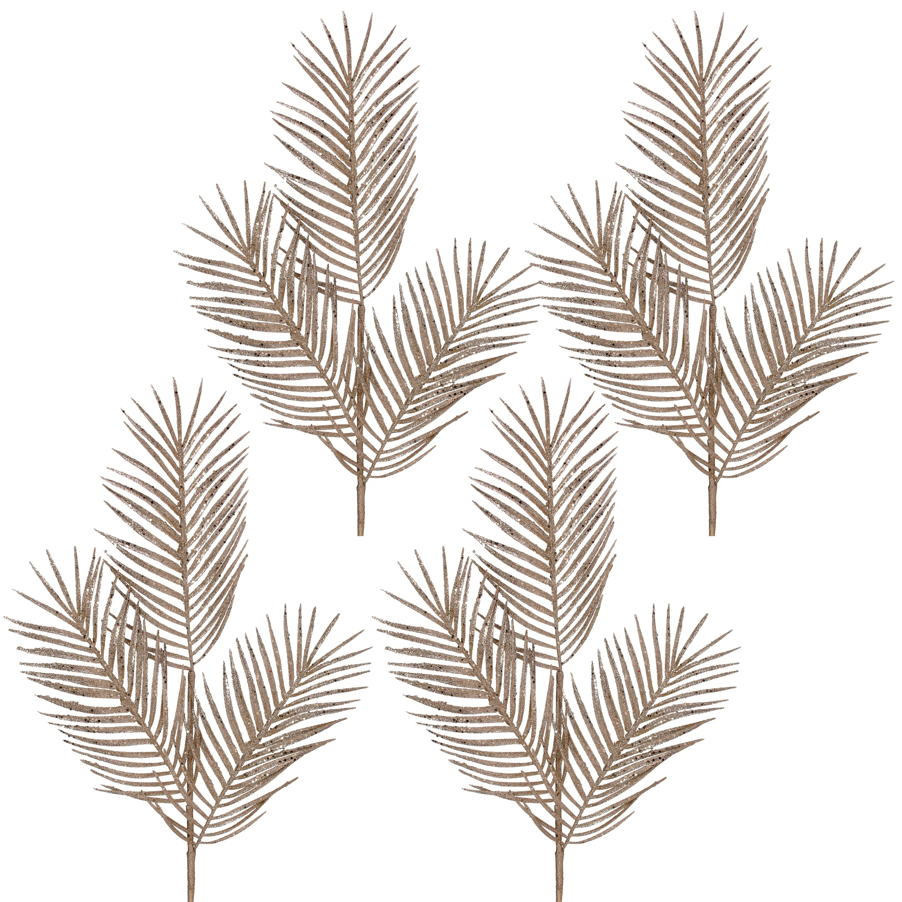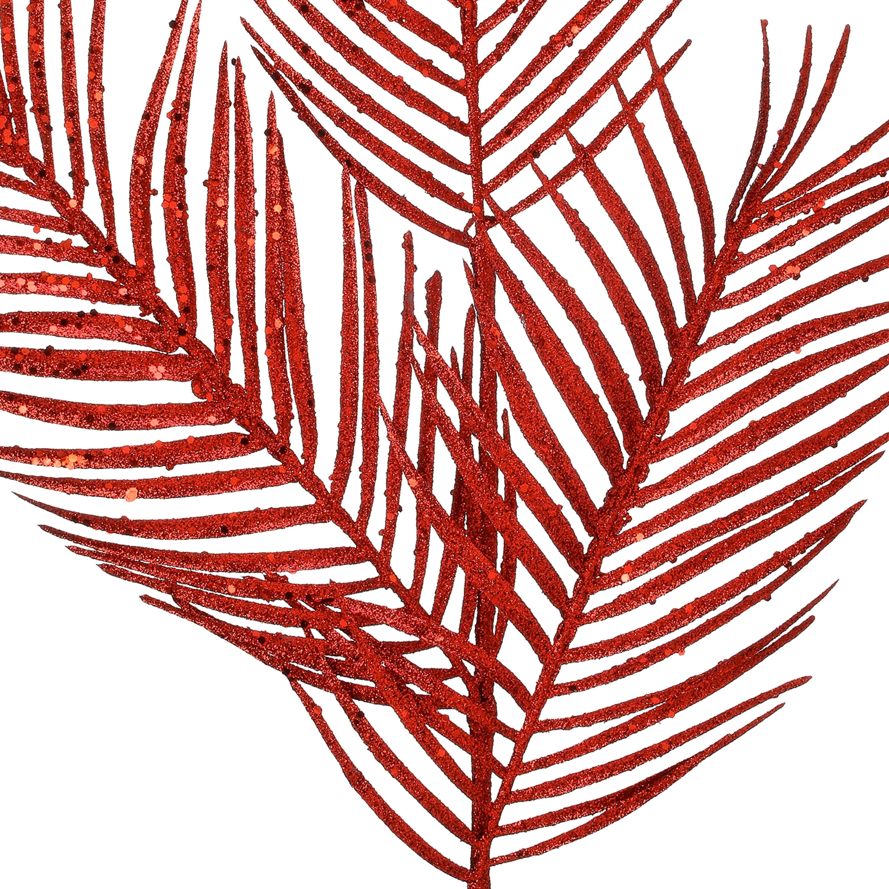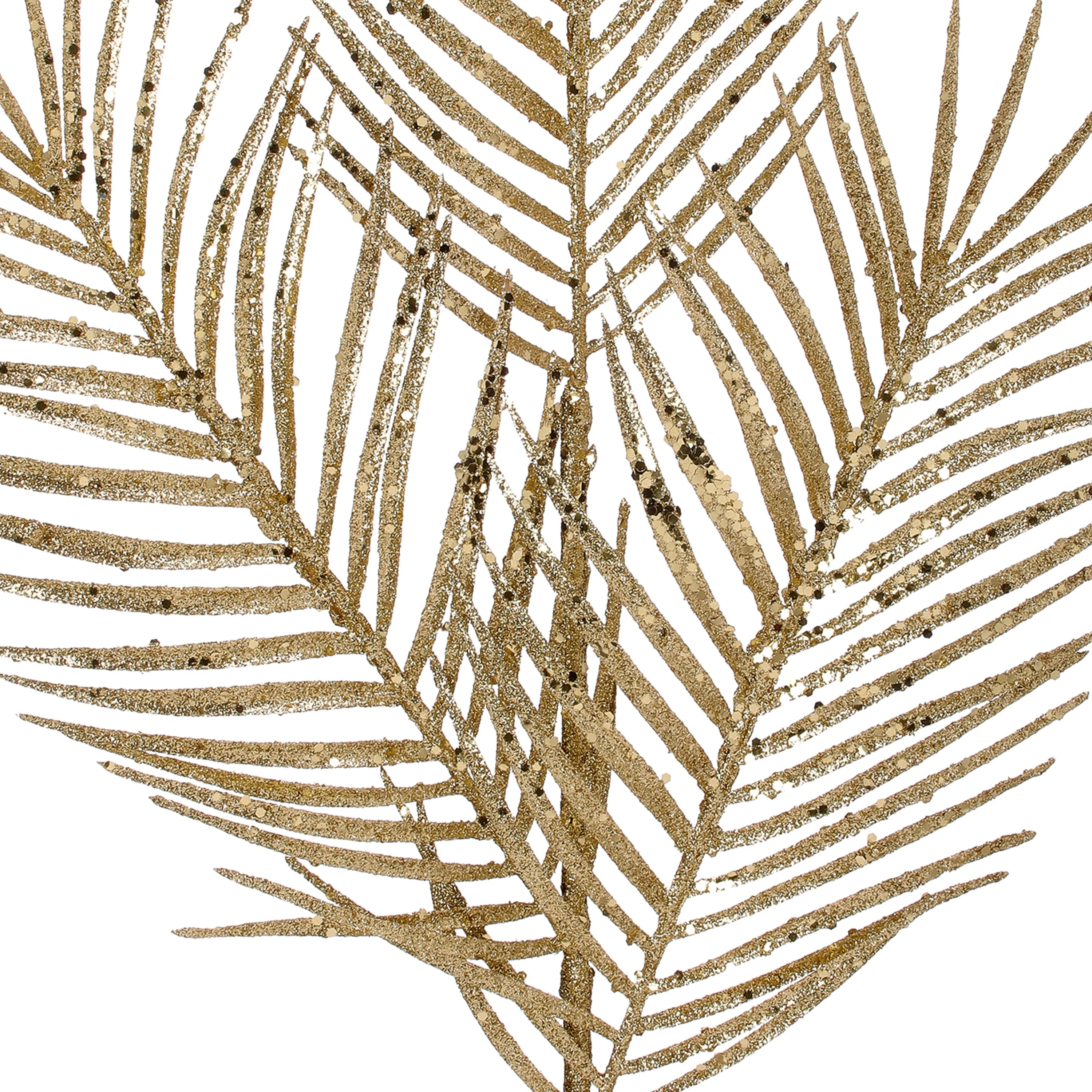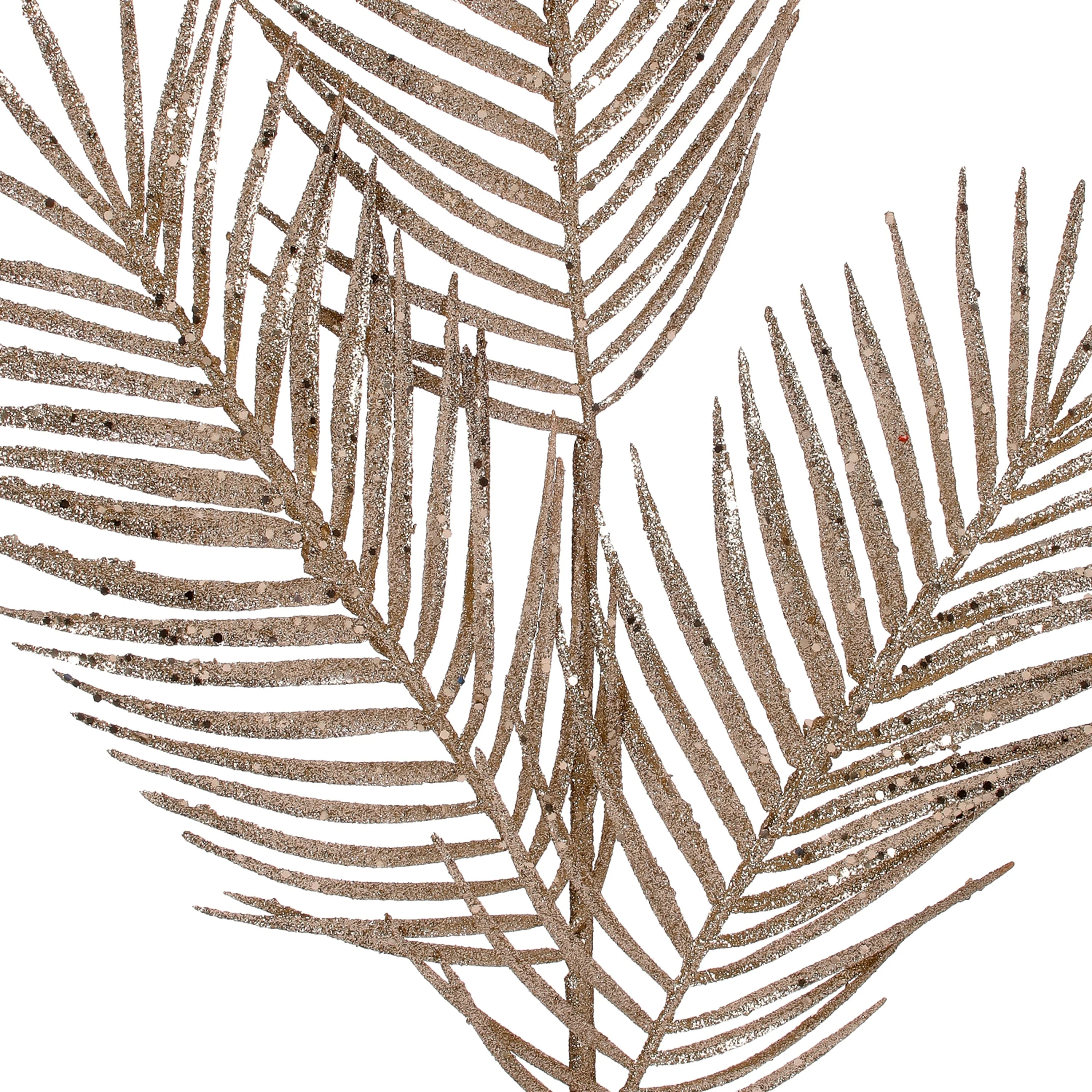 Add a touch of tropical elegance to your décor with this stunning 34" Glitter Mica Triple Palm Leaf Spray. Crafted with intricate detail, each leaf features a shimmering glitter finish, creating a luxurious sparkle that catches the light. Perfect for Christmas trees, wreaths, centerpiece designs, or as a standalone accent, this spray brings a vibrant, yet refined aesthetic to any space. Whether you're decorating for the holidays, special events, or simply enhancing your home décor, this eye-catching piece is sure to impress. Bring the beauty of the tropics into your home with this exquisite palm leaf spray!