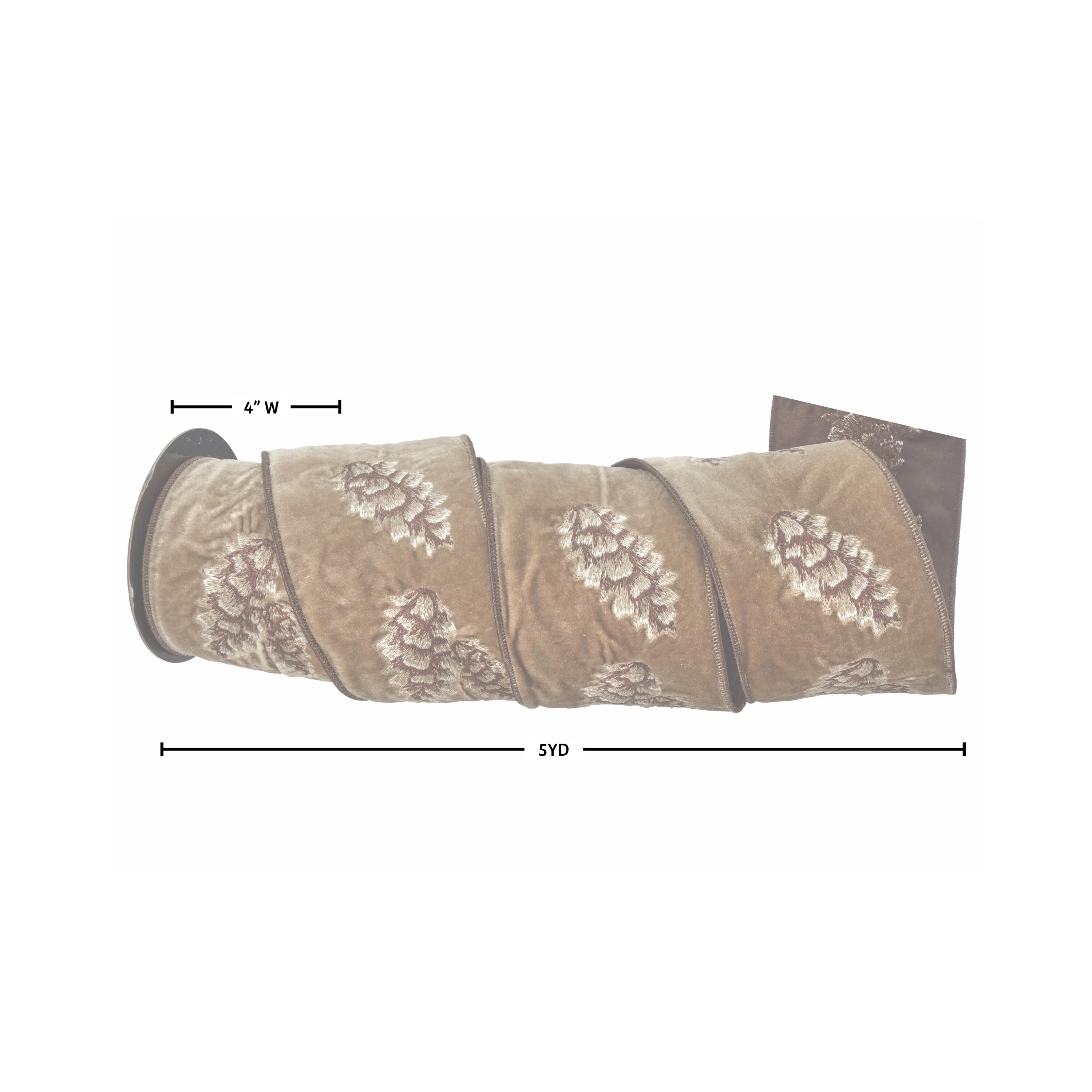 Elevate your holiday d茅cor with the rich texture and woodland charm of this 4" x 5-yard Embroidered Suede Pinecone Ribbon. Made from soft suede fabric and delicately embroidered with detailed pinecones and evergreen accents, this premium ribbon adds a rustic yet refined touch to wreaths, garlands, Christmas trees, and gift wrapping. Perfect for farmhouse, woodland, and traditional holiday themes, this pinecone ribbon is wired for easy shaping and styling, making it ideal for bows, accents, and layered d茅cor.