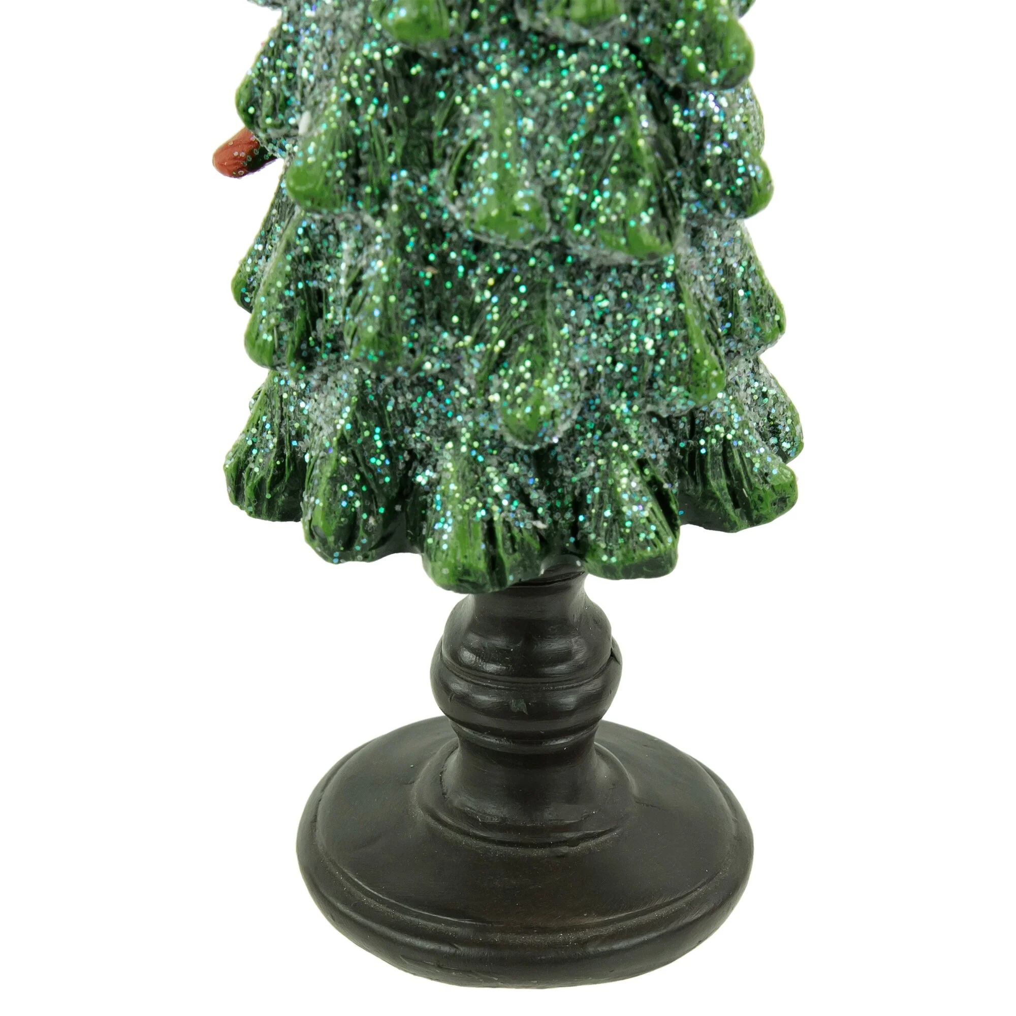 It's the most wonderful time of the year to deck the halls with this tabletop decoration! This Christmas tree is accented with red cardinals and is embellished with green glitter. This will make the perfect addition to your mantle table shelves or anywhere you want to add some holiday cheer. Product Features: Green Christmas tree decoration. Features a green tree and accented with red cardinals. Embellished with green glitter. Round wooden base. For indoor use only. Dimension: 8.75" high by 2.75" diameter. Material(s): resin