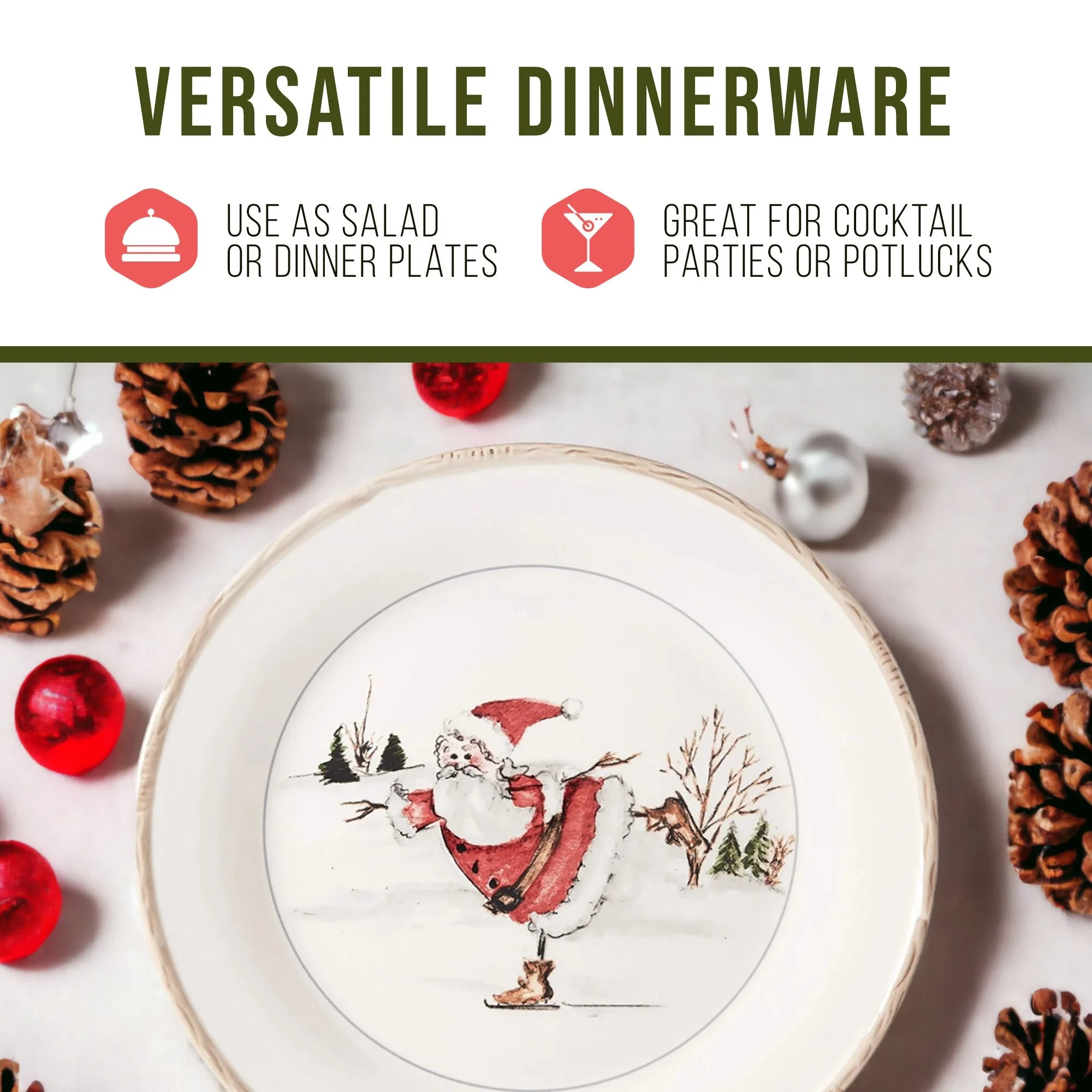 - Holiday-Themed Design: Add festive cheer to your table with this set of Christmas twig holiday dinner plates. Featuring a charming image of Santa skating through a snowy forest, these plates are perfect for adding holiday spirit to your gatherings.