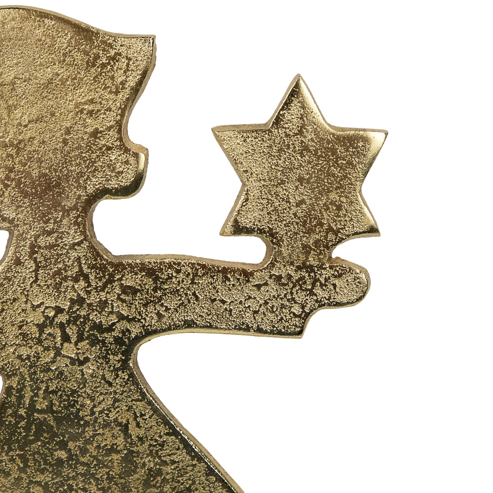 This exquisite piece features a radiant gold-tone finish, capturing the essence of celestial beauty. Delicately crafted, it depicts an adorable angel cradling a star, evoking feelings of warmth and wonder. Complete with a metal tealight candle holder dish and presented on a sturdy wooden base, it adds a touch of elegance to any setting. Perfect for adorning tables, shelves, and mantels, this charming decor is ideal for creating a festive ambiance.