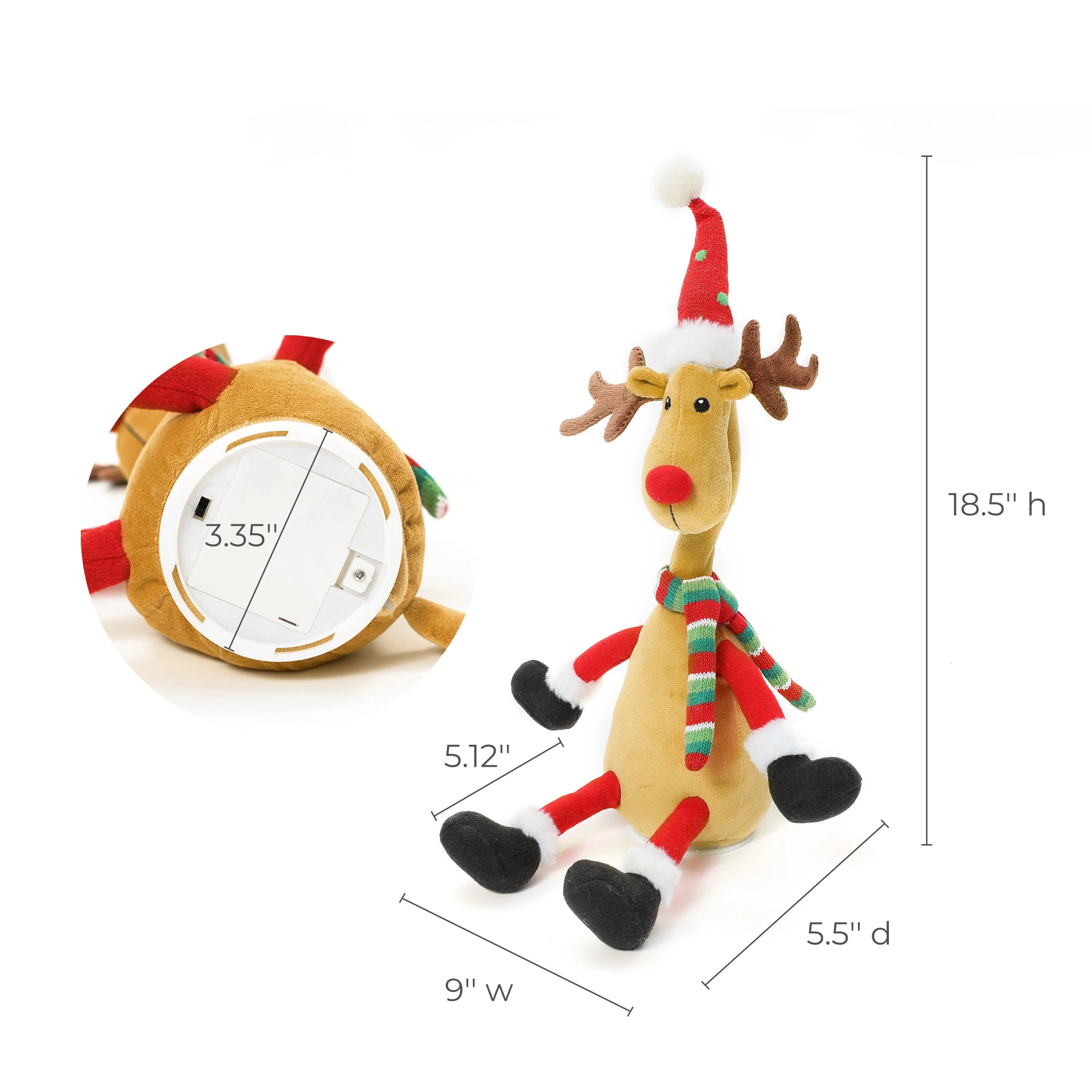 - Animated Singing 18.5" Tall Reindeer Holiday Decoration responds to sound cues with a Christmas song and dancing, making it a fun and interactive addition to your seasonal festivities.