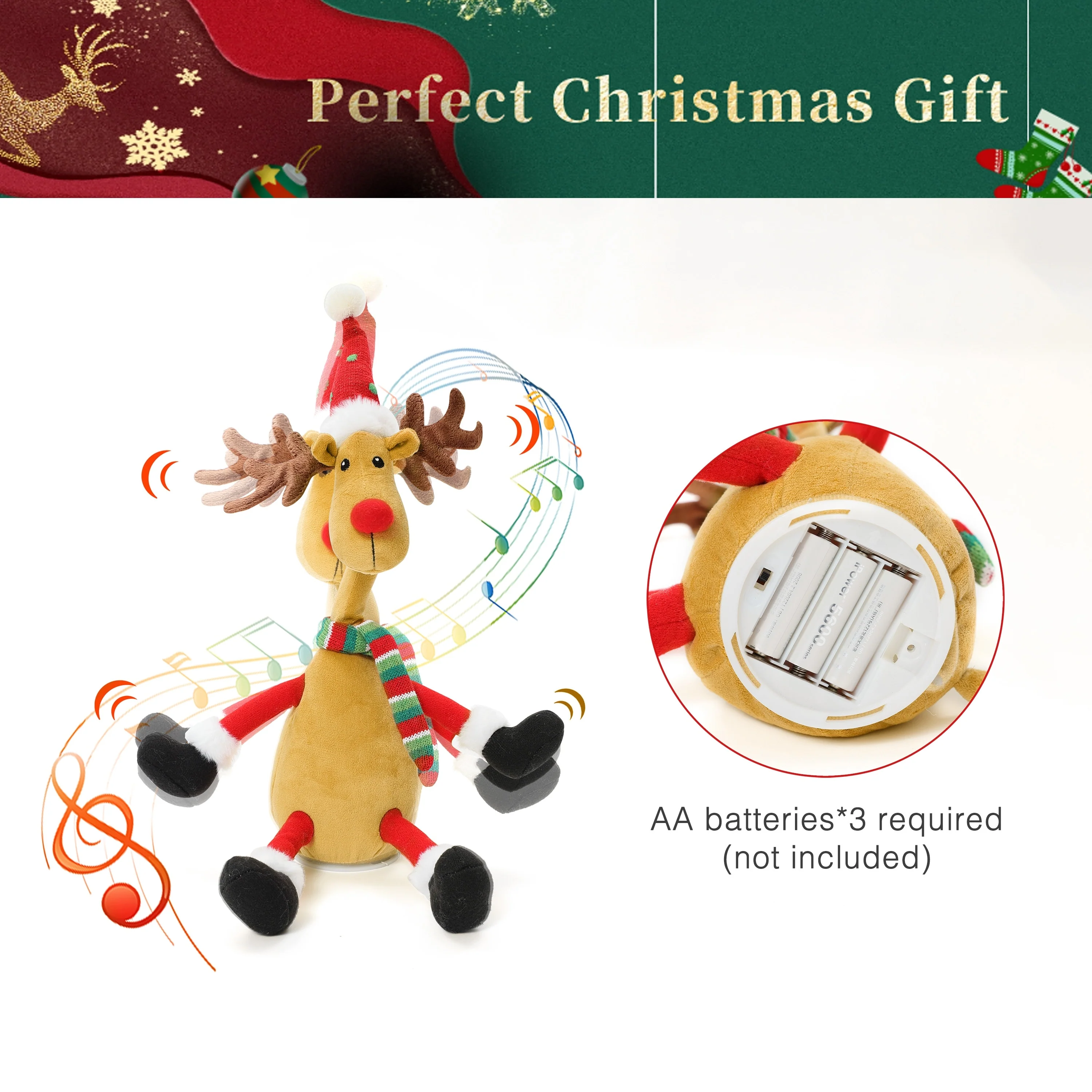 - The plush Christmas reindeer dances to a lively Christmas tune, adding to its visual allure and holiday cheer for kids and adults alike.