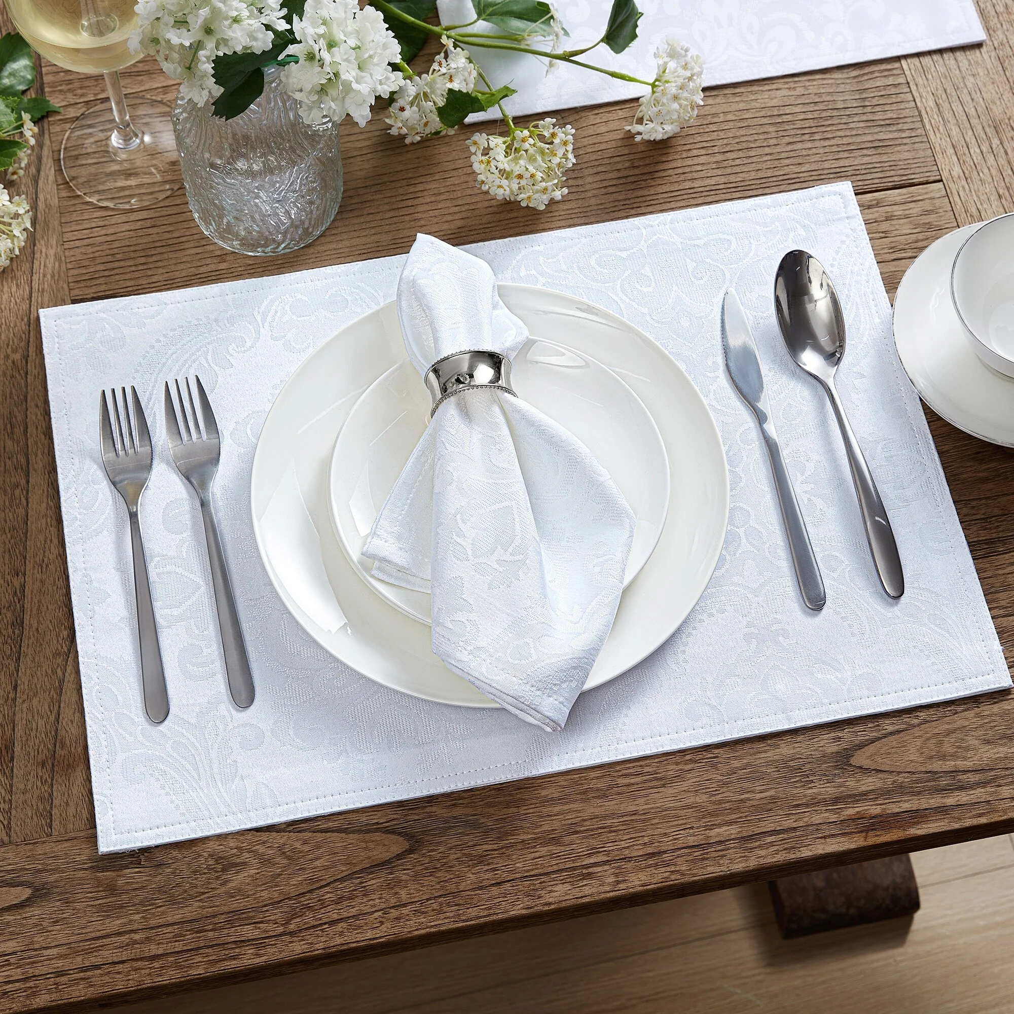 - Woven jacquard damask pattern