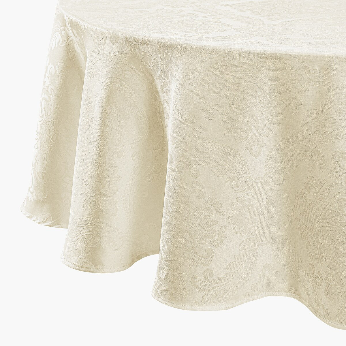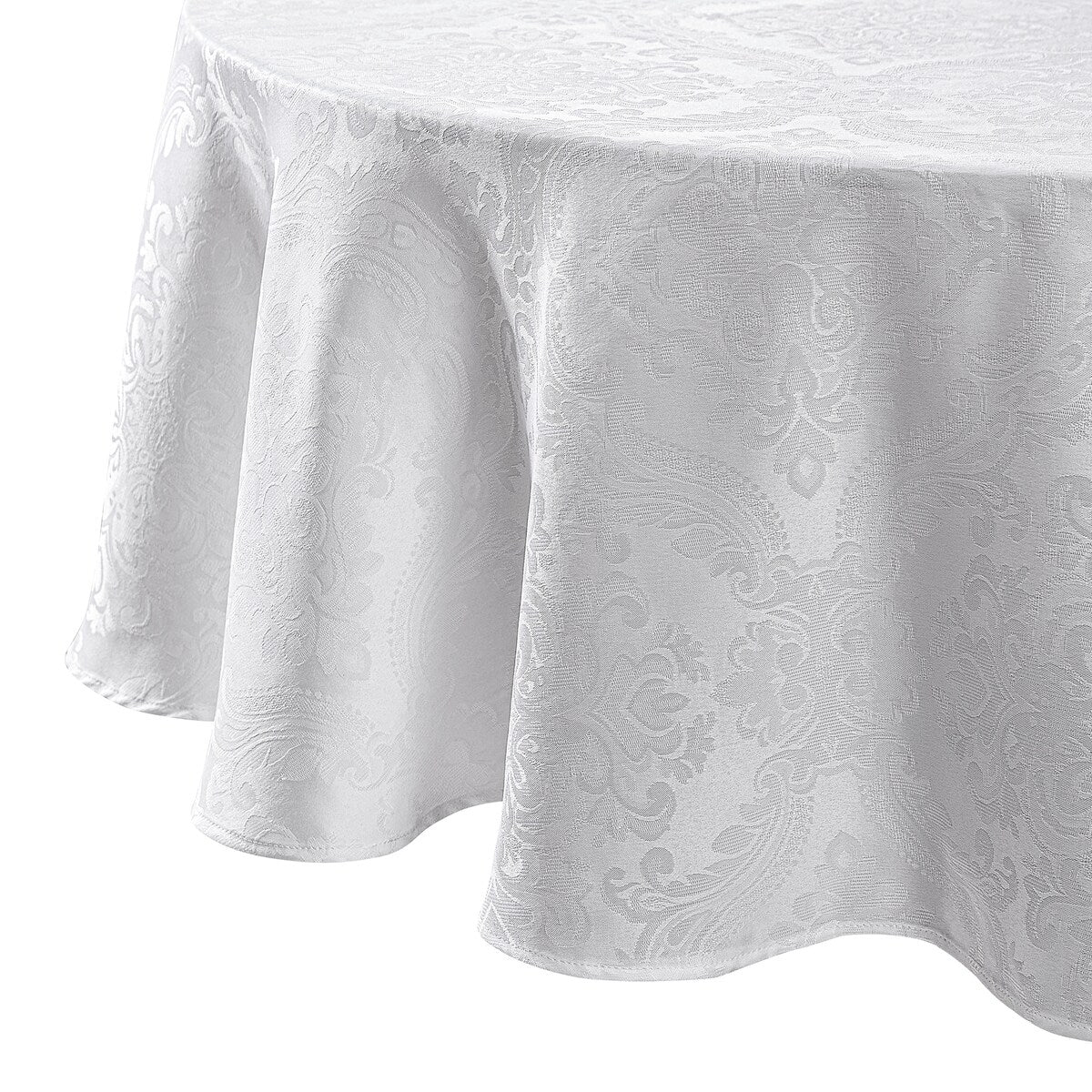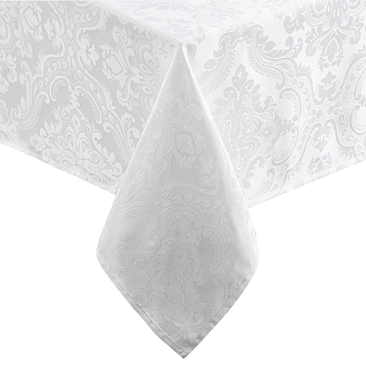 Make Sunday dinners or holiday celebrations all the more special with the supreme elegance of this tablecloth. A delicate woven jacquard damask pattern dances gracefully over the smooth, richly-colored fabric for distinctive texture perfect for entertaining. The polyester material has a water and stain repellant finish for years of attractive use.