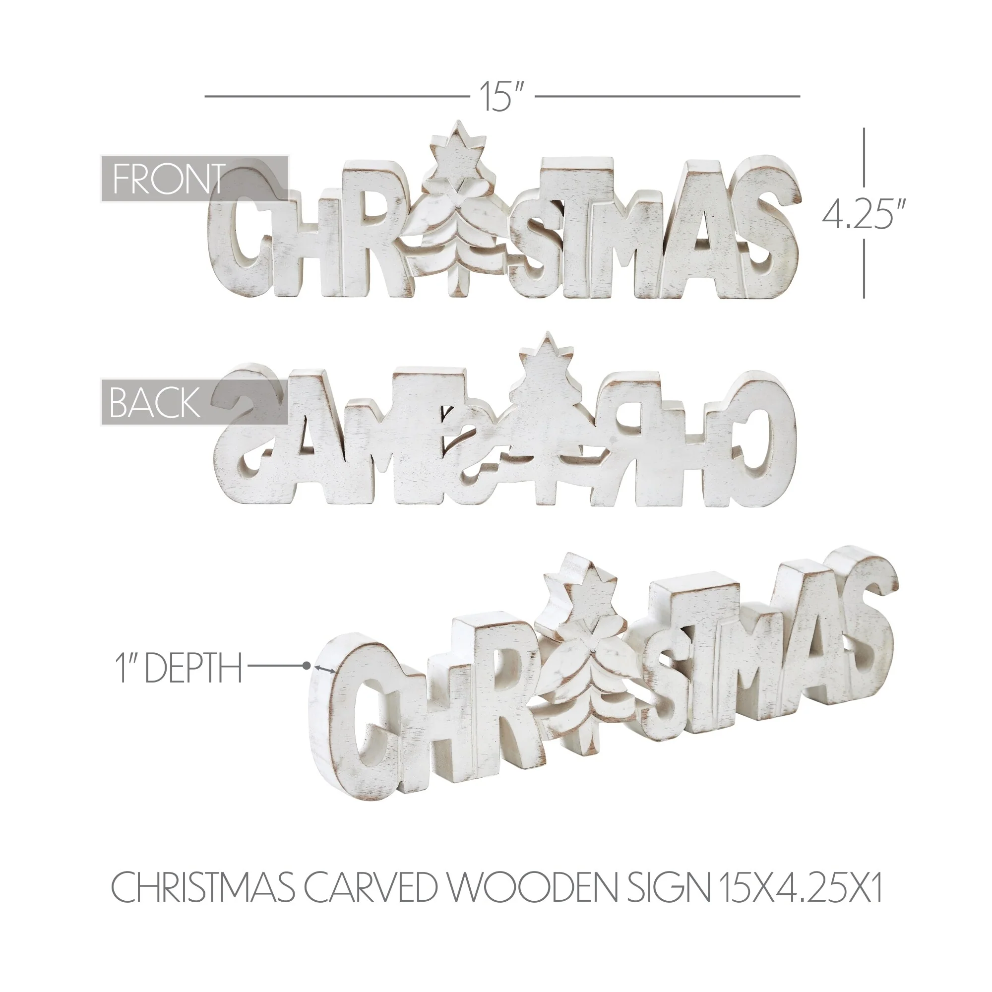 Elevate your winter and Christmas decor with the charming VHC Brands Tropical Wood CHRISTMAS Carved Wooden Sign. Crafted from tropical wood, this exquisite sign features a cutout design of the word Christmas adorned with a festive tree motif, adding a touch of seasonal elegance to your tabletops and shelves. Measuring 15 inches in length, 4.25 inches in width, and 1 inch in height, it serves as a captivating centerpiece that captures the essence of farmhouse and country-inspired Christmas themes. The light wood tan and light creme color palette of this carved wooden sign complements a variety of interior decor styles, infusing your home with rustic charm and warmth. Its farmhouse Christmas design, coupled with carved graphics and a distressed appearance, exudes a cozy ambiance that invites comfort and joy into any space. Whether placed in the dining room, entryway, kitchen, or living room, this sign serves as a delightful accent piece that celebrates the spirit of the season. Maintaining the pristine condition of this wooden sign is effortless - simply wipe it clean with a soft cloth to remove dust and preserve its intricate detailing. With its intricate craftsmanship and nostalgic appeal, the VHC Brands Tropical Wood CHRISTMAS Carved Wooden Sign adds a festive flair to your indoor decorations, creating a welcoming atmosphere for winter gatherings and Christmas celebrations.