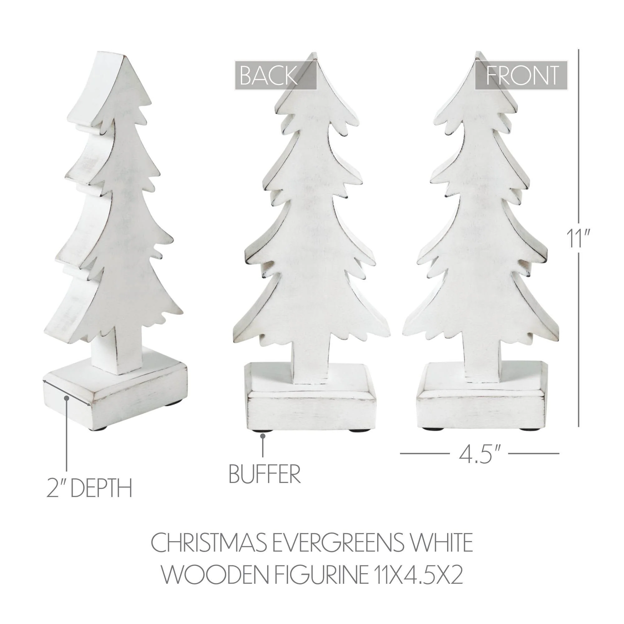 Christmas Evergreens White Wooden Figurine 11x4.5x2