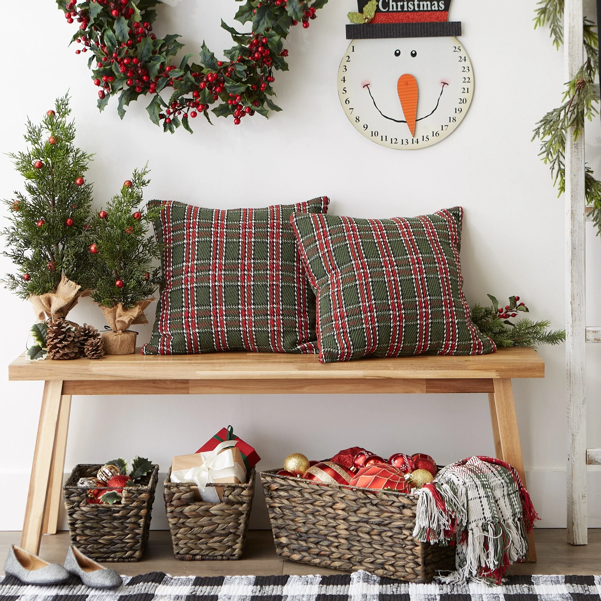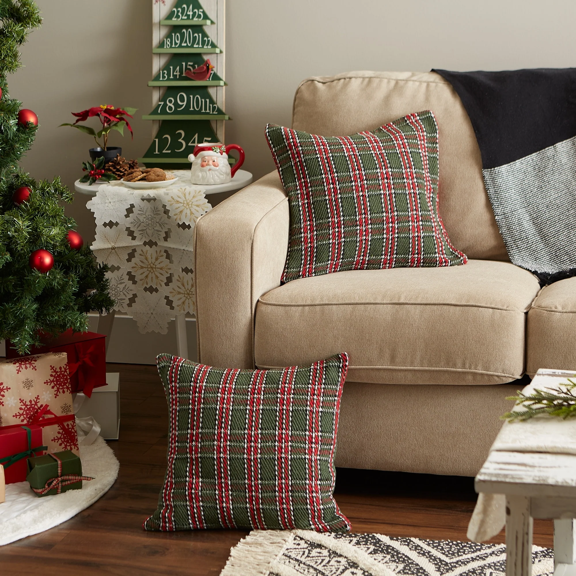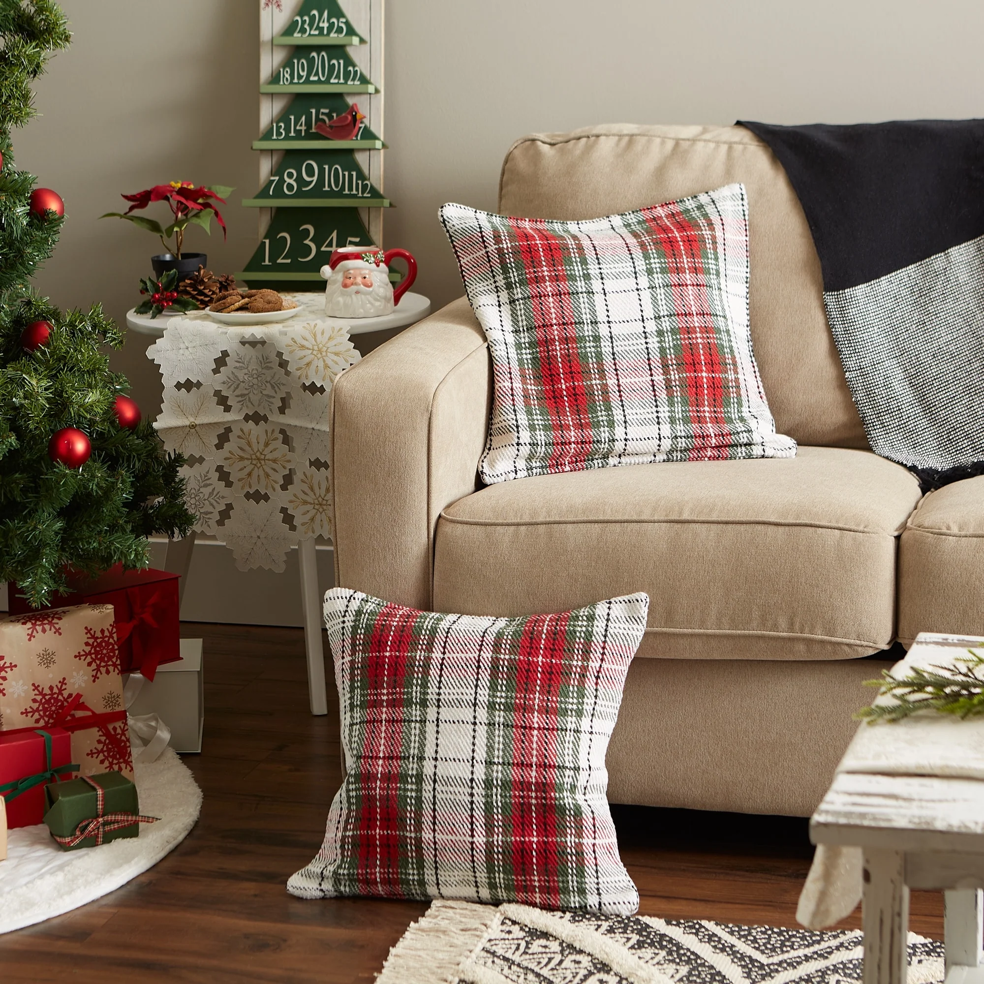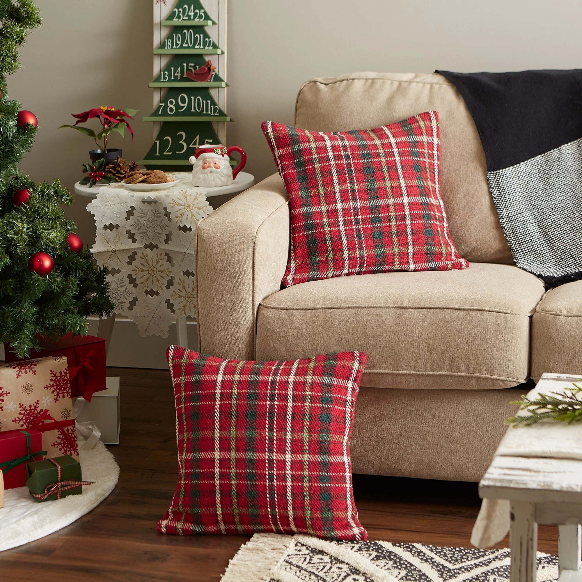 Christmas Plaid Recycled Cotton Pillow Cover 18x18 (Set of 2)