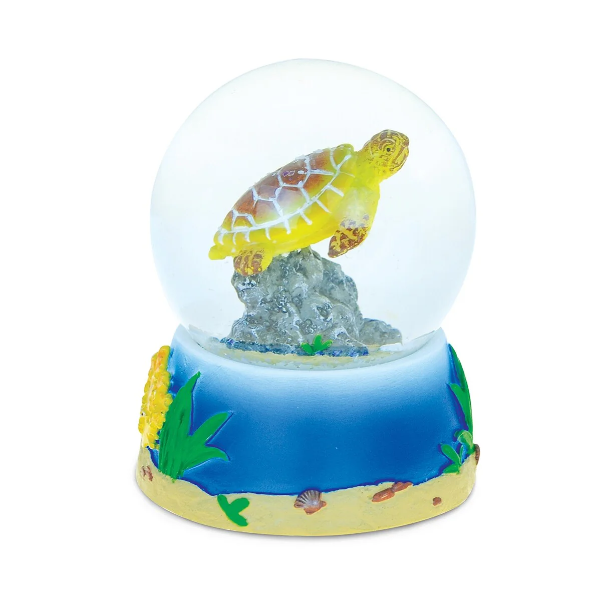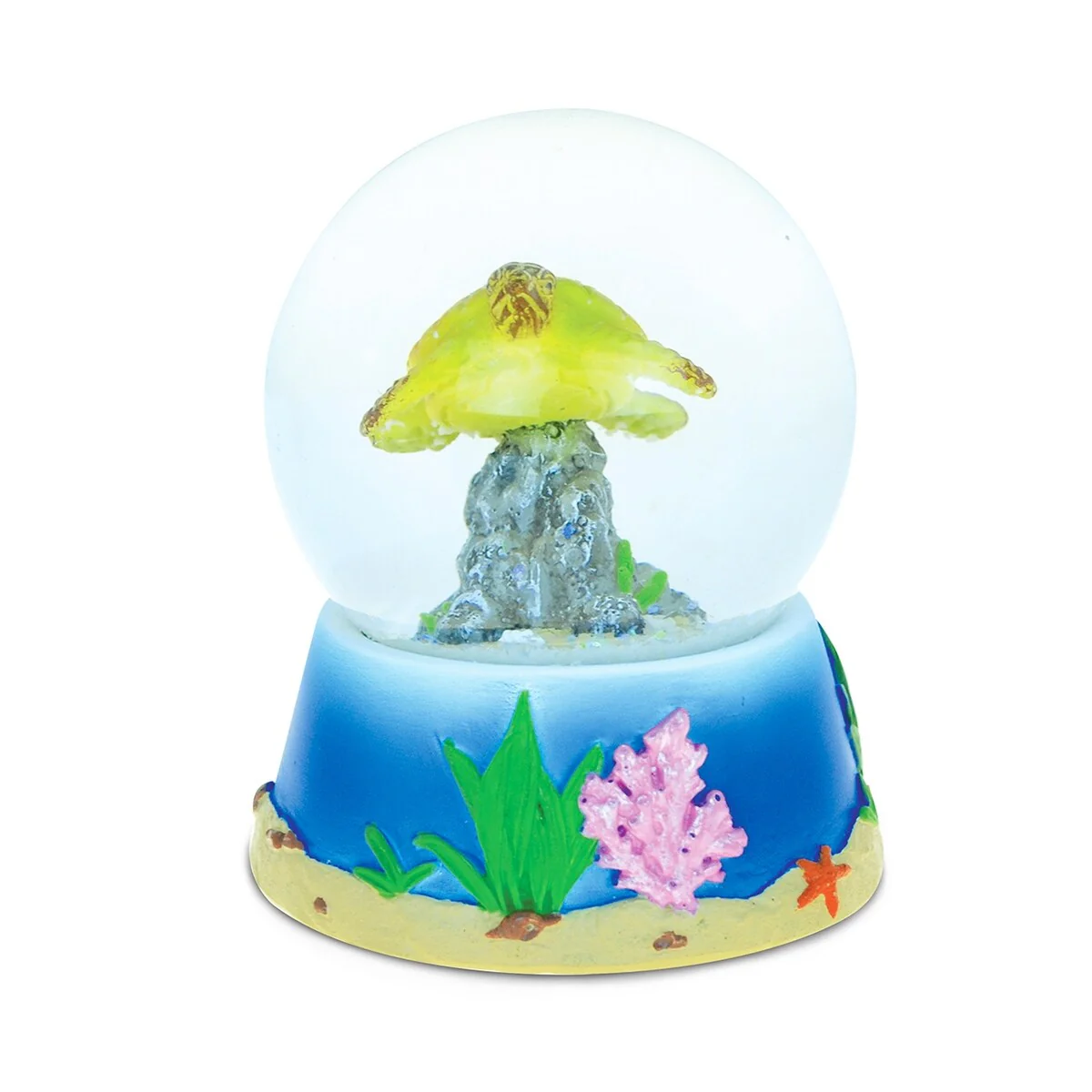 - THE TURTLE SNOW GLOBE COMES WITH A UNIQUE DESIGN YOU LOVE – Show your love for cute turtles with a sparkly fun Sea Turtle tabletop decor. The ocean animal snow globe figurine is shaped in ocean floor design with coral and seaweed and a sea turtle inside the water globe. Shake the globe to see the colorful sparkly snow confetti fall on top the turtle and enjoy the show! Our hand painted Turtle Globe is a unique novelty collectible home decor.