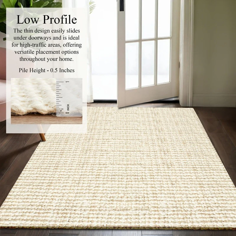 Delara Premium Handwoven Natural Fiber Area Rug Boucle 100% Jute excellent choice in high-traffic areas such as Living rooms