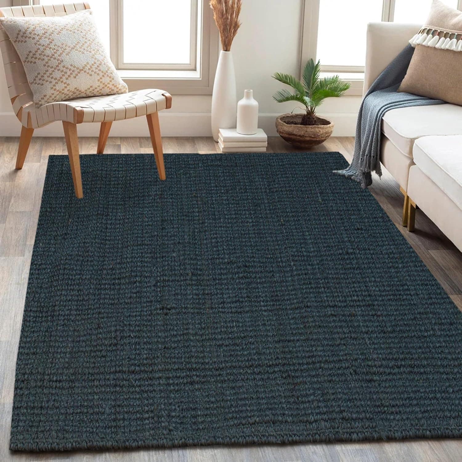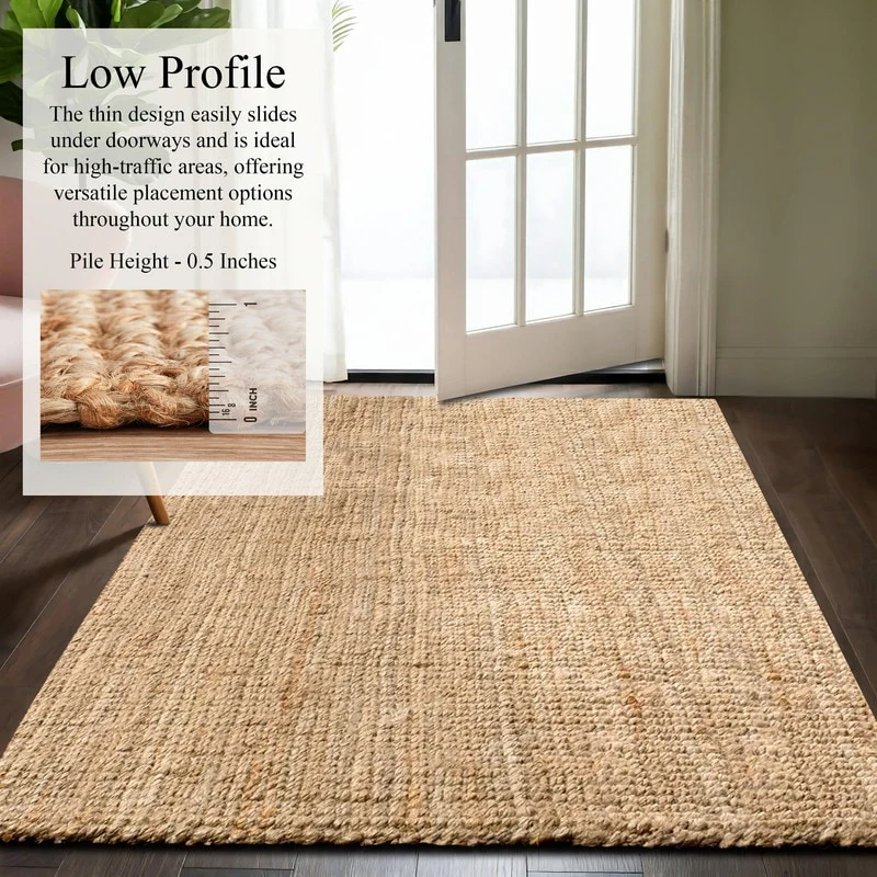 • EARTHY TEXTURE: Jute rugs offer a distinctive, textured look that adds warmth to any space.  this durable area rug is designed for comfort and style. This floor rug offers comfort without being too bulky for your pets, guests, and children.