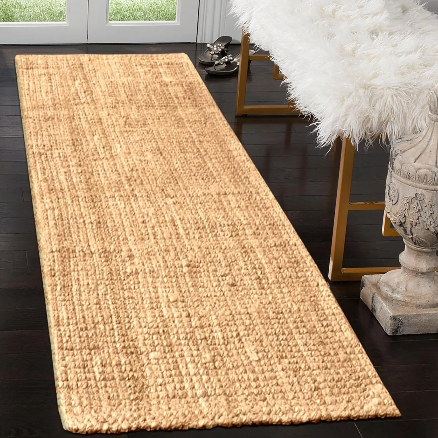 • Delara Premium Handwoven Natural Fiber Area Rug Boucle 100% Jute excellent choice in high-traffic areas such as Living rooms