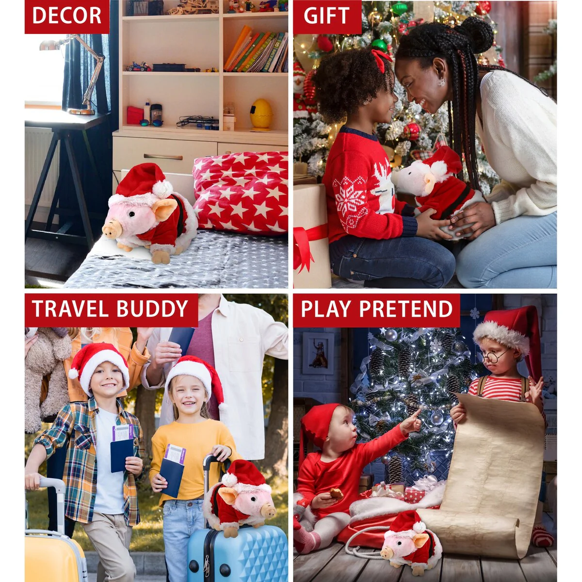 - IDEAL USE FOR THE SQUAT PIG SANTA CLAUS STUFFED ANIMAL – Send your warmest thoughts and best wishes to your loved ones with a sentimental piggy plush during the holiday season and make the day extra special. Gifting plush pig with a classic red Santa Claus hat outfit is a cute way to share the joy of the holidays. Make occasions memorable by surprising him or her with a huggable piggy plush that can be displayed under their Christmas Tree.