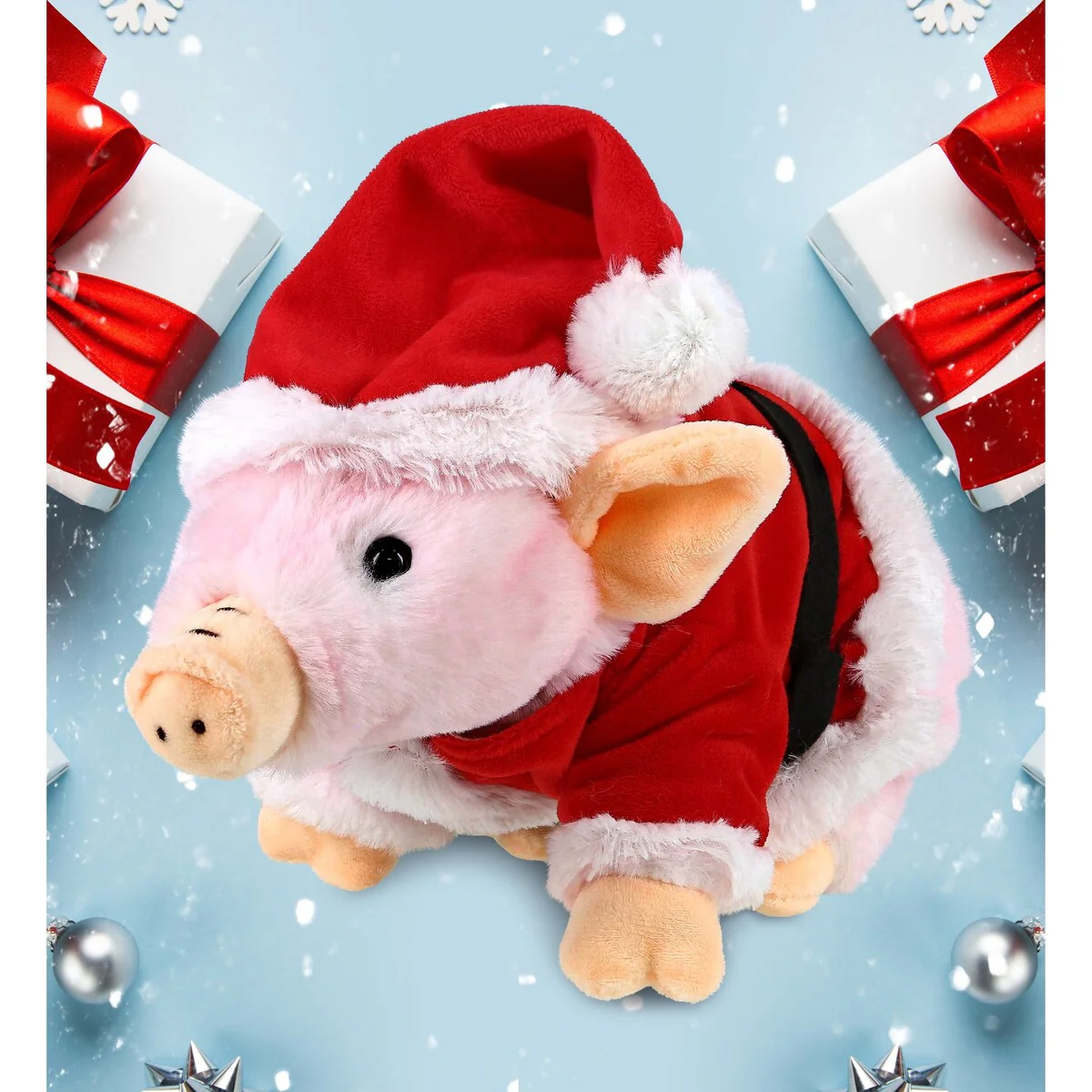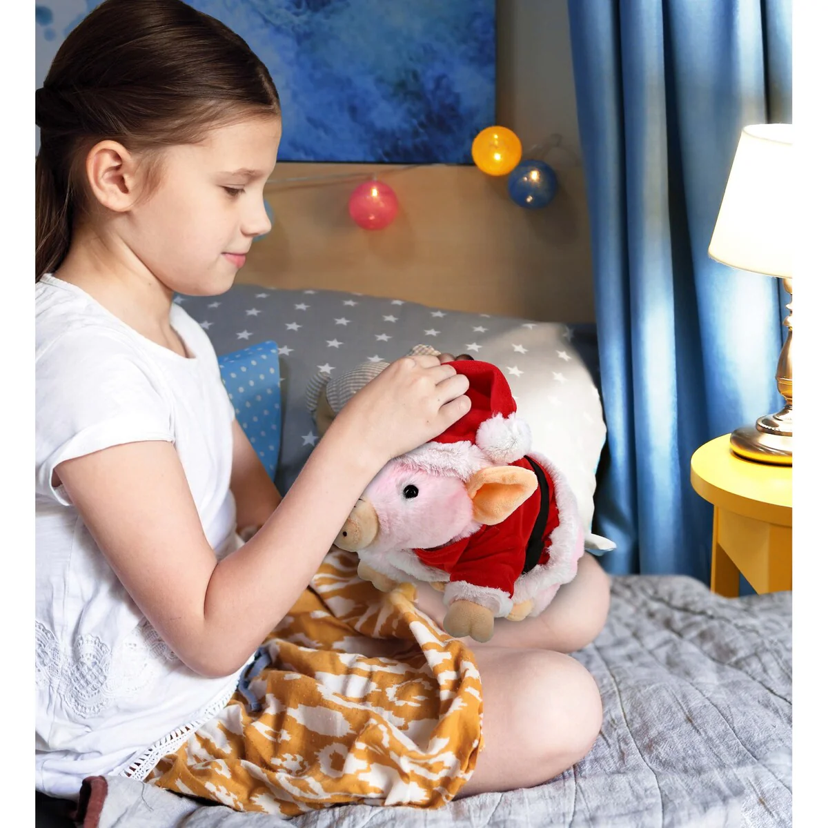 - INCLUDED WITH THE PURCHASE – Includes 1 Super Soft Squat Pig Plush Toy in a Santa Claus red classic hat and coat outfit. The adorable Pig plush animal wears a white plush-trimmed red stocking cap. The red cap complements the stuffed toy’s coat and black belt. The body is made of soft fabric and fluffy plush, making the Santa Pig perfect for cuddles and snuggles. Pig Santa stuffed toy measures 7Lx5Wx6.5H inches.