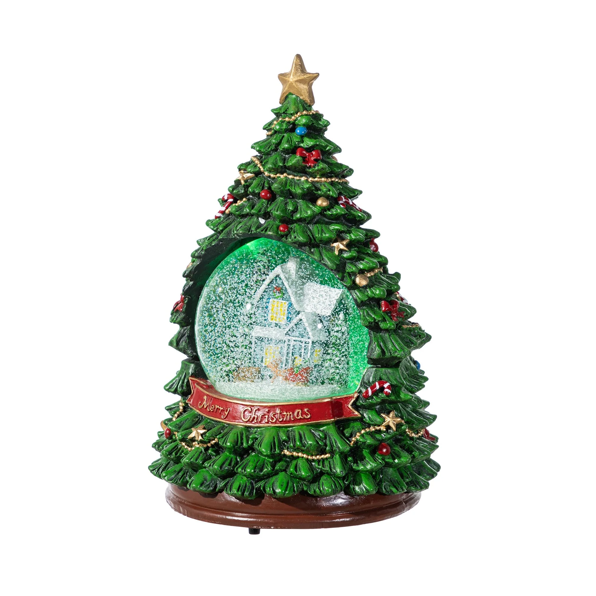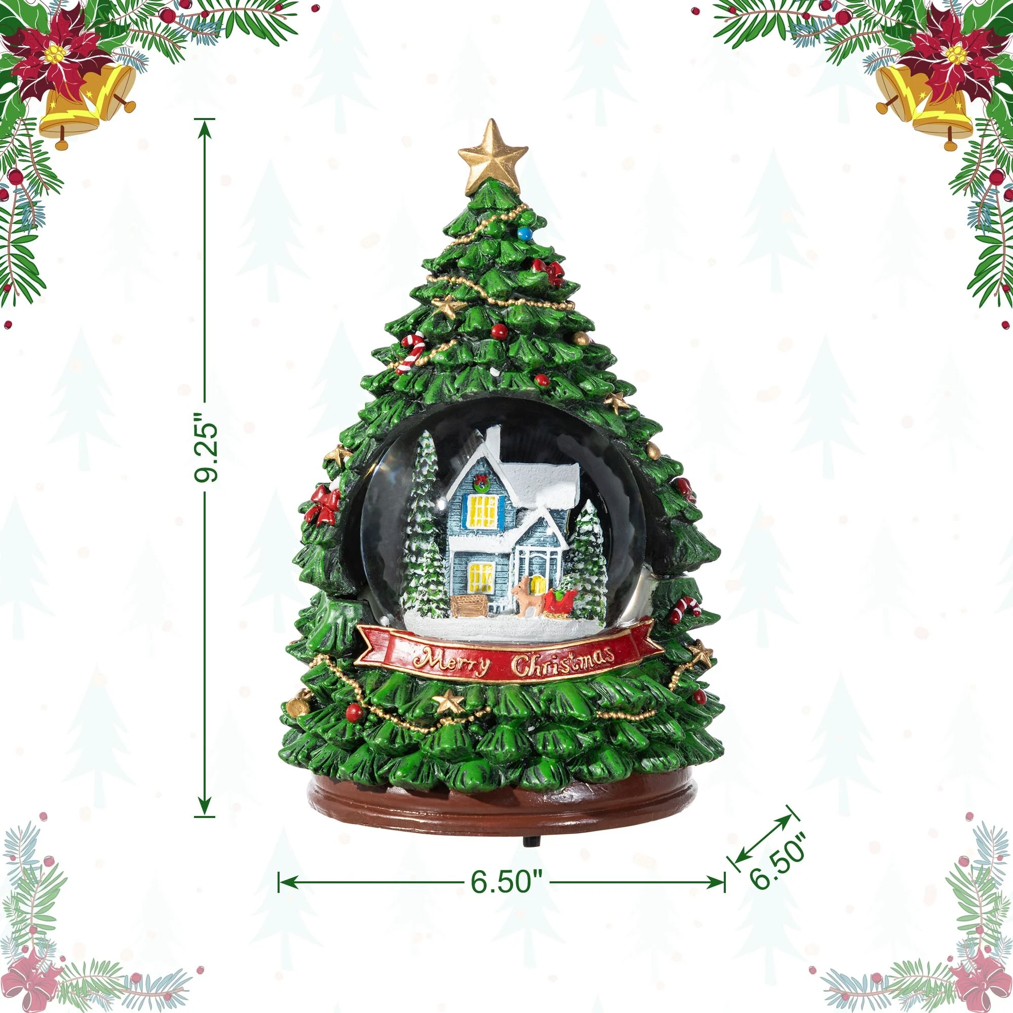 The 100mm Christmas Resin Lighted Musical Snowflakes Christmas Tree Waterglobe is a charming holiday decoration. It features a beautifully crafted Christmas tree design with a snow globe at the center, showcasing a festive scene of a house and trees, complete with a musical function that plays classic holiday tunes and a delightful snow effect that adds to the magical atmosphere of the season.