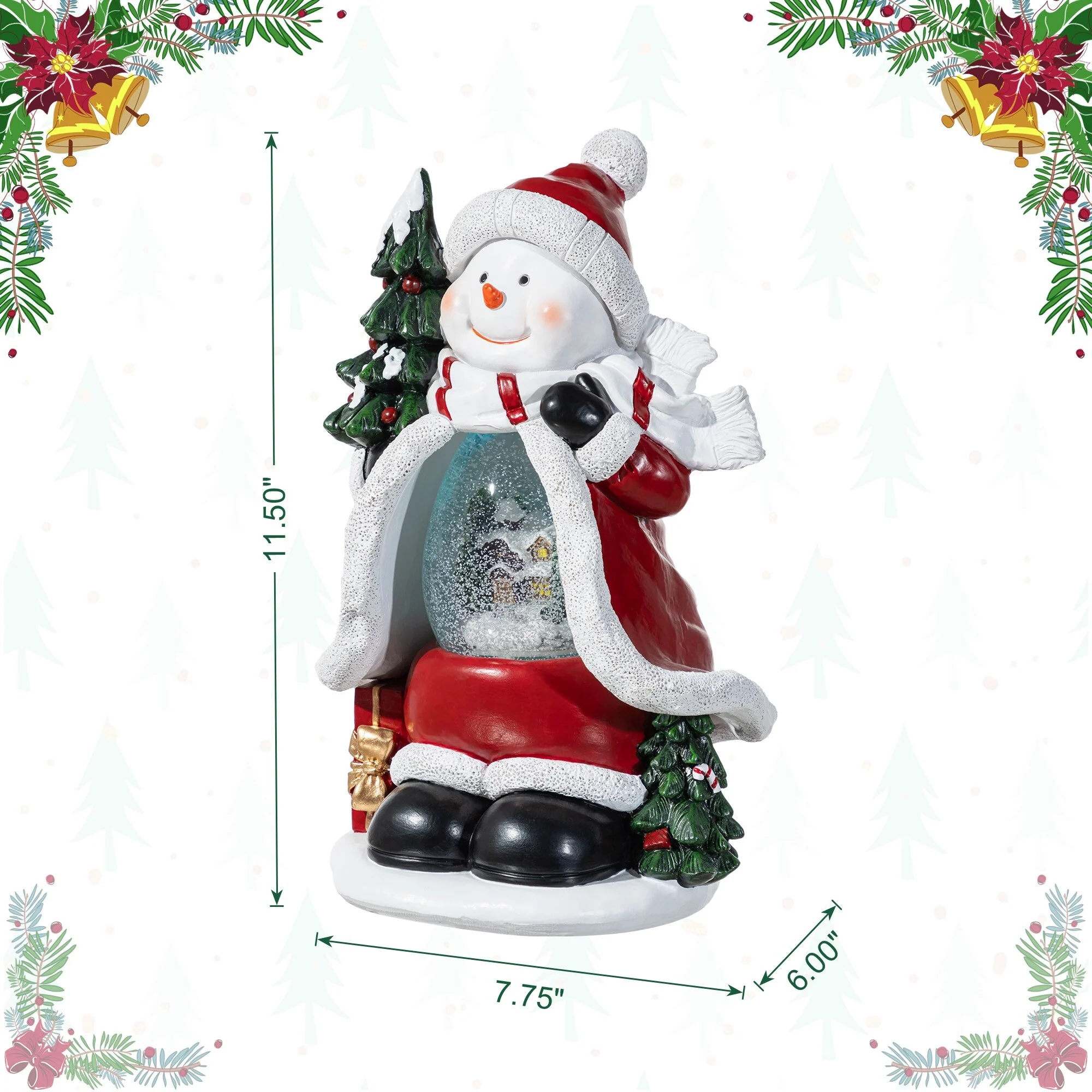 The 100mm Christmas Resin Lighted Snowflakes Waterglobe is a festive and whimsical holiday decoration featuring a jolly snowman figurine with a built-in waterglobe that showcases a serene winter scene, complete with a light-up feature that illuminates the snowman and the floating snowflakes, creating a magical and enchanting display for the Christmas season.