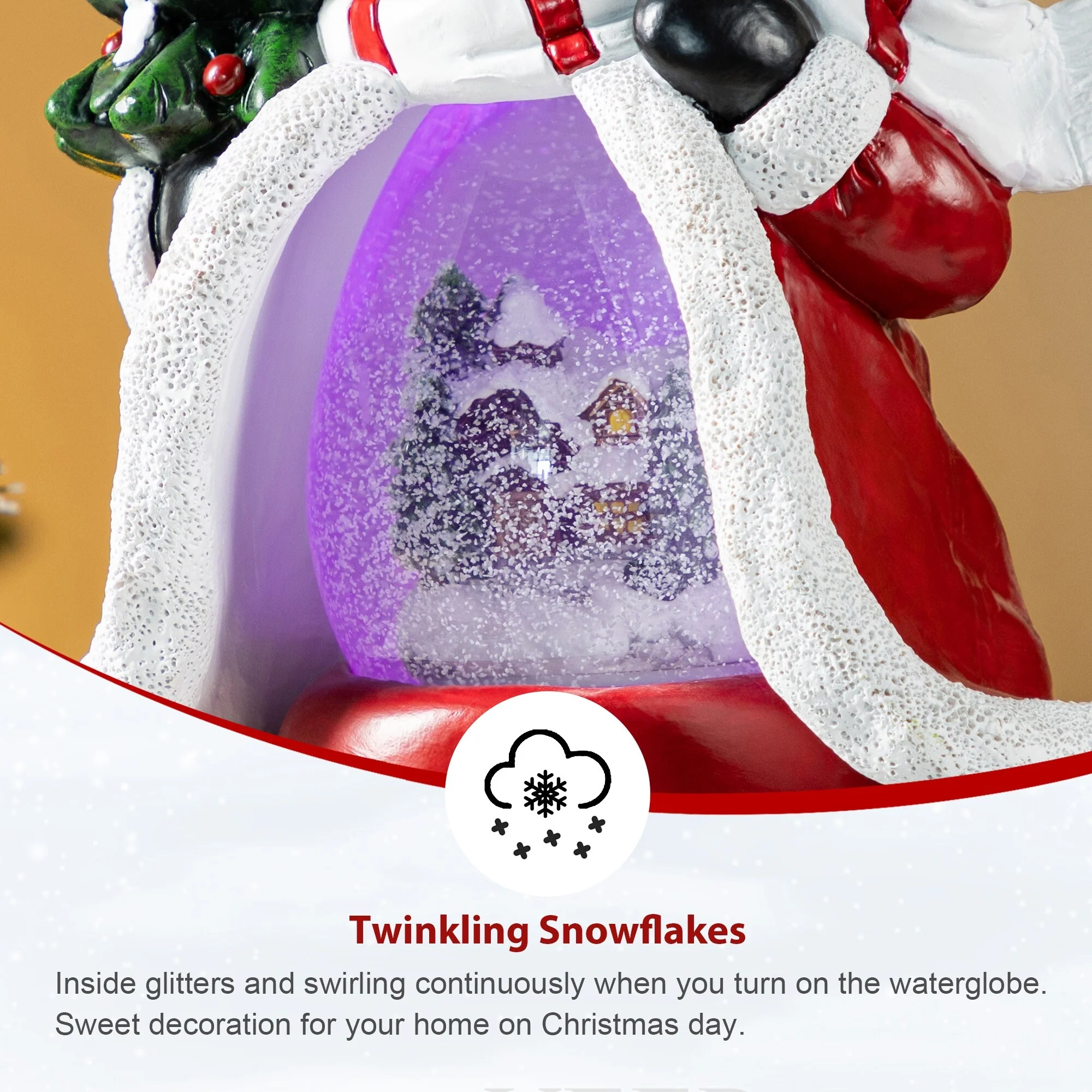 - Continuous swirling glitter.