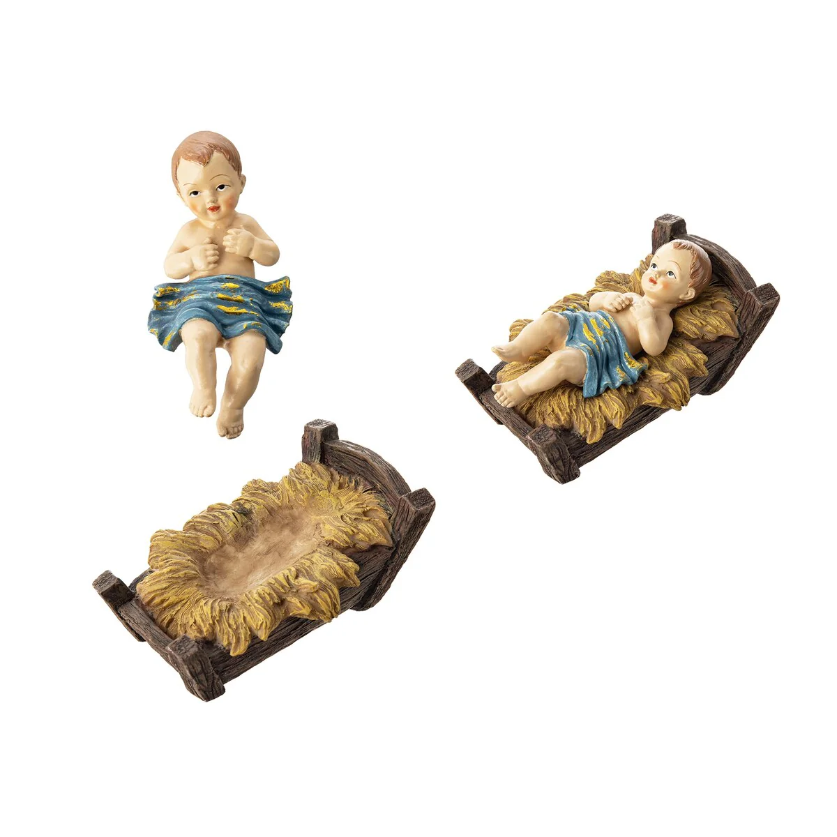 - Nativity set of 12 pieces, including the Holy Family, the Three Wise Men, a shepherd holding a lamb, and an angel