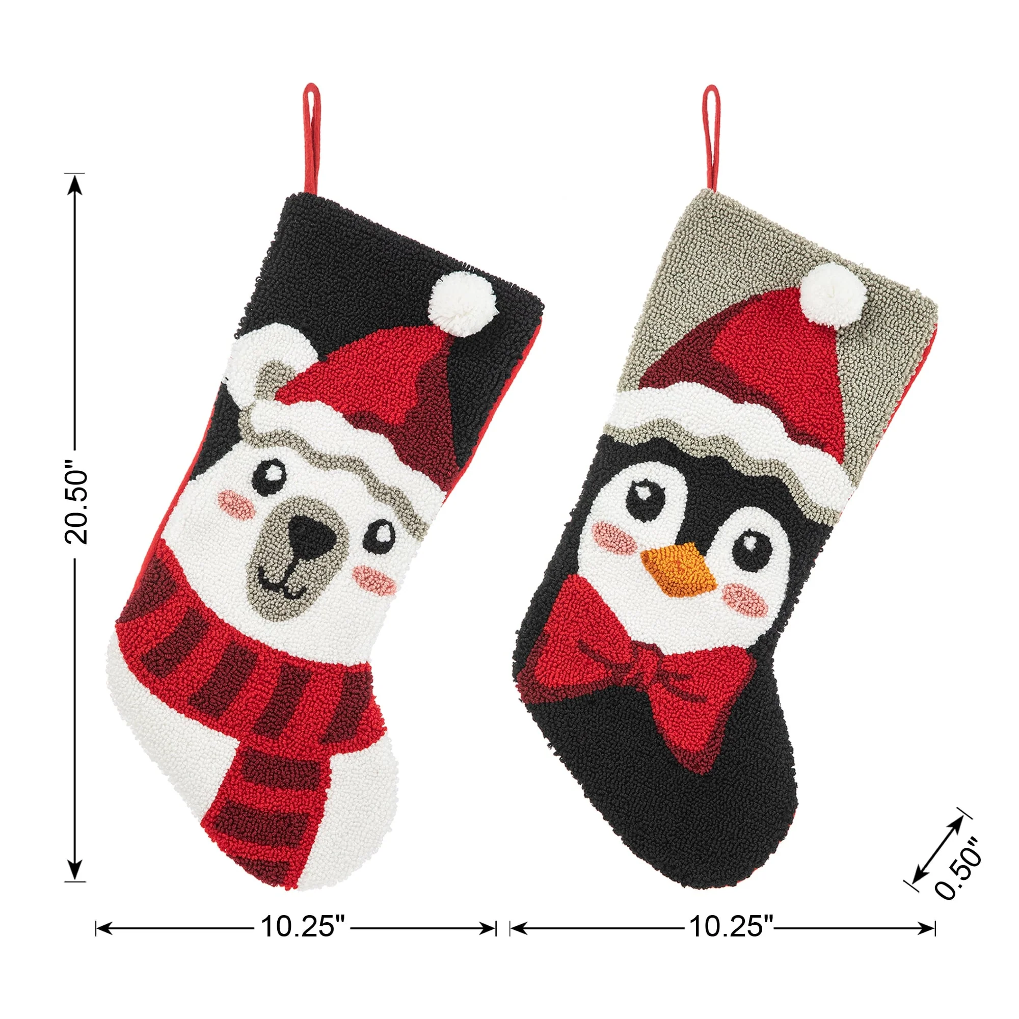 These stockings feature with a cute Polar bear & Penguin design. High quality hooked material and exquisite workmanship make it look perfect, not only as a holiday decoration but a delivery of your love to your family members. Unique decorative style will provide a festive atmosphere in any room in your house, providing the handmade charm of a true vintage Christmas.