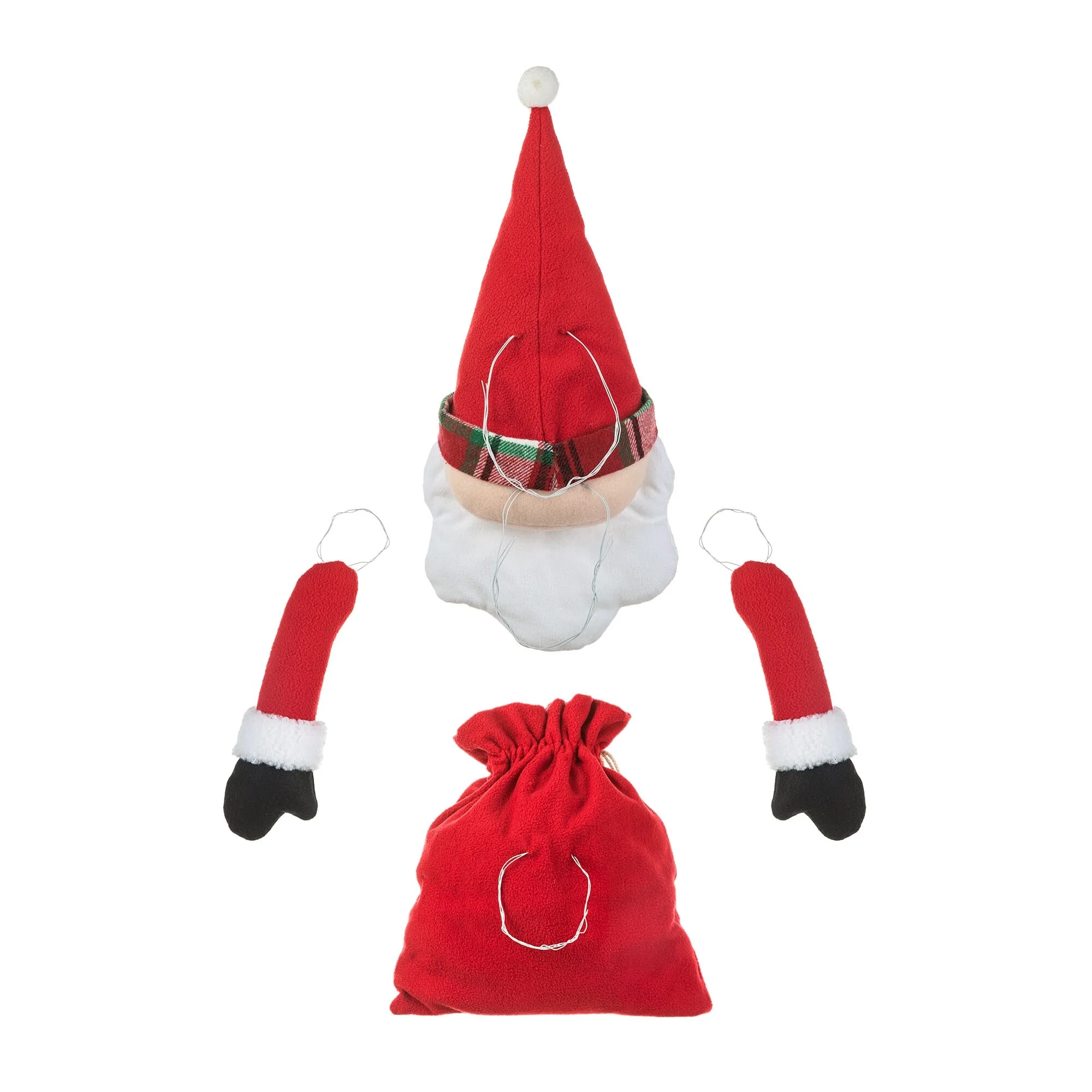 This adorable ornament features a Santa Claus figure with white beard, and a red hat with a white pompom on top. It is made of high-quality fabric and is designed with a flexible wire attached to it. The inclusion of a flexible wire allows for easy attachment to various surfaces, making it perfect for adorning Christmas trees, wreaths, or even garlands. Simply twist or wrap the wire around the branches or hooks, and the ornament will securely hang in place, adding a festive touch to your holiday decorations.