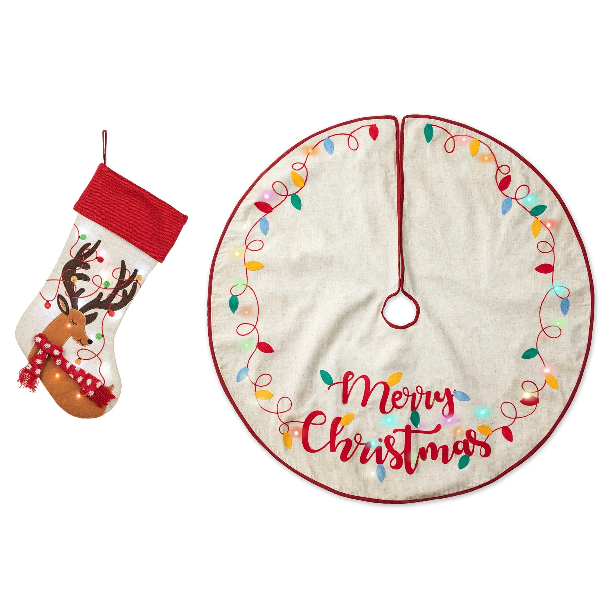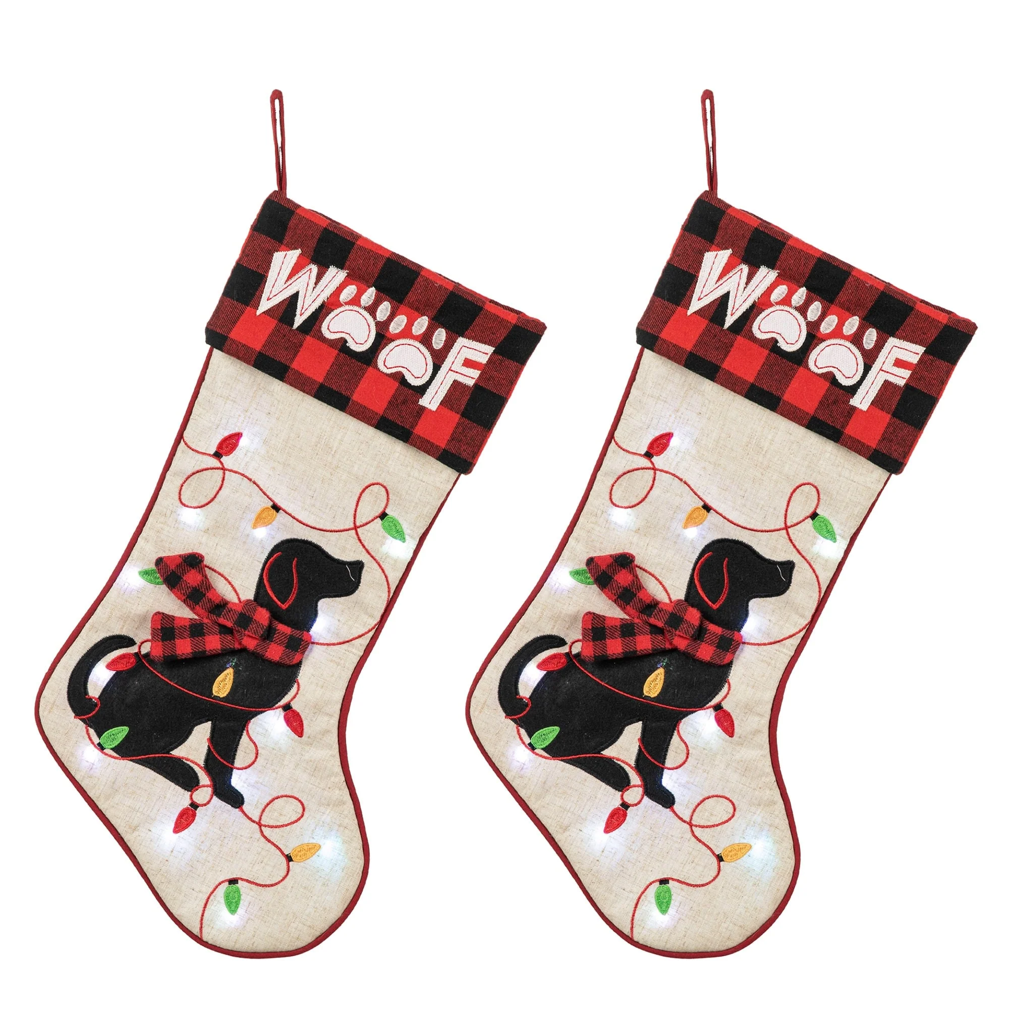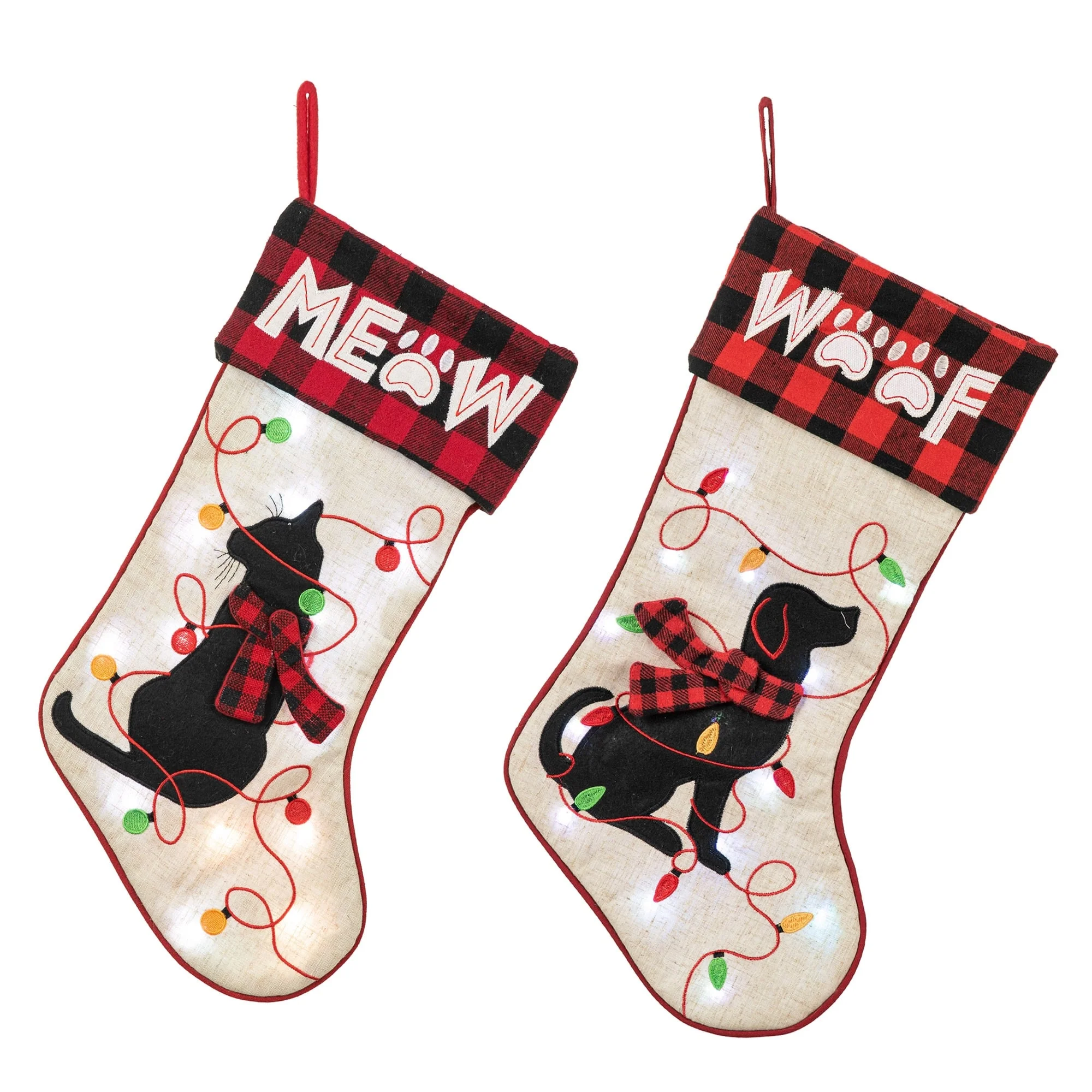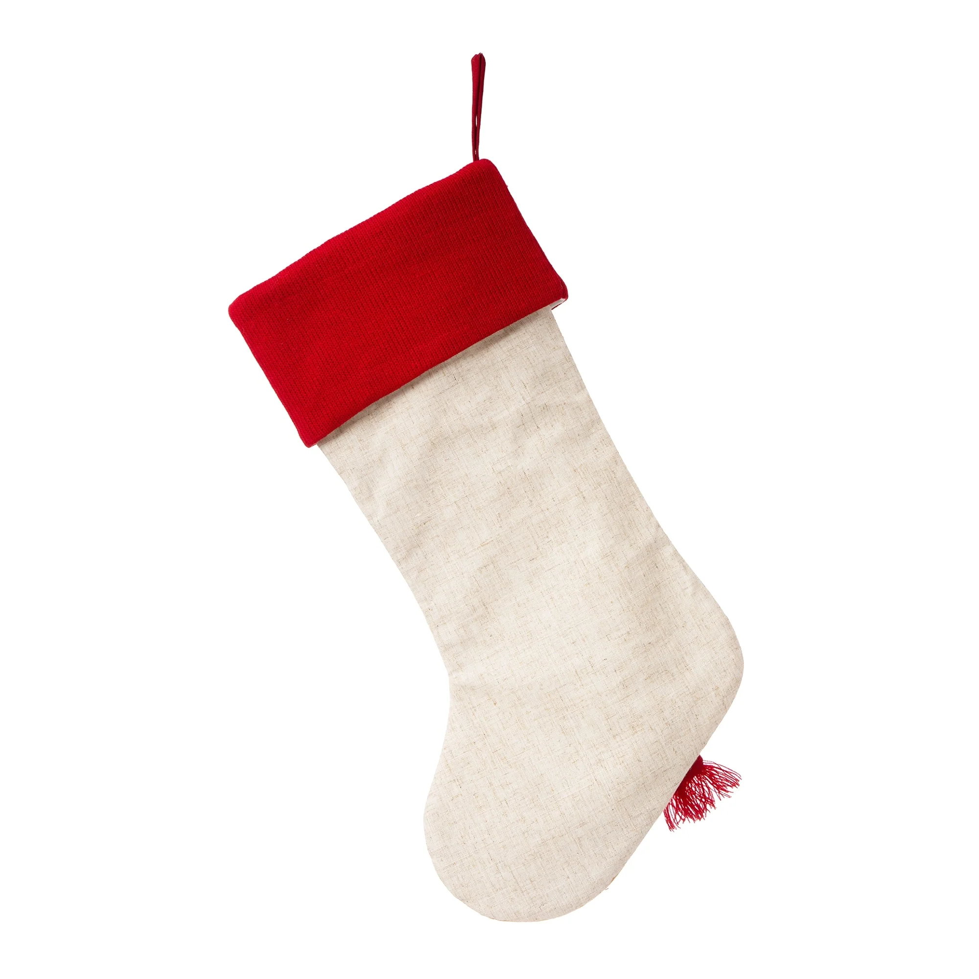 LED embroidered linen Christmas stockings are the special decorating part to welcome Santa. We provide the handcraft one for you to celebrate the very season in the year, with high quality material, you can experience the soft and smooth touch, and is safe for your younger kids.