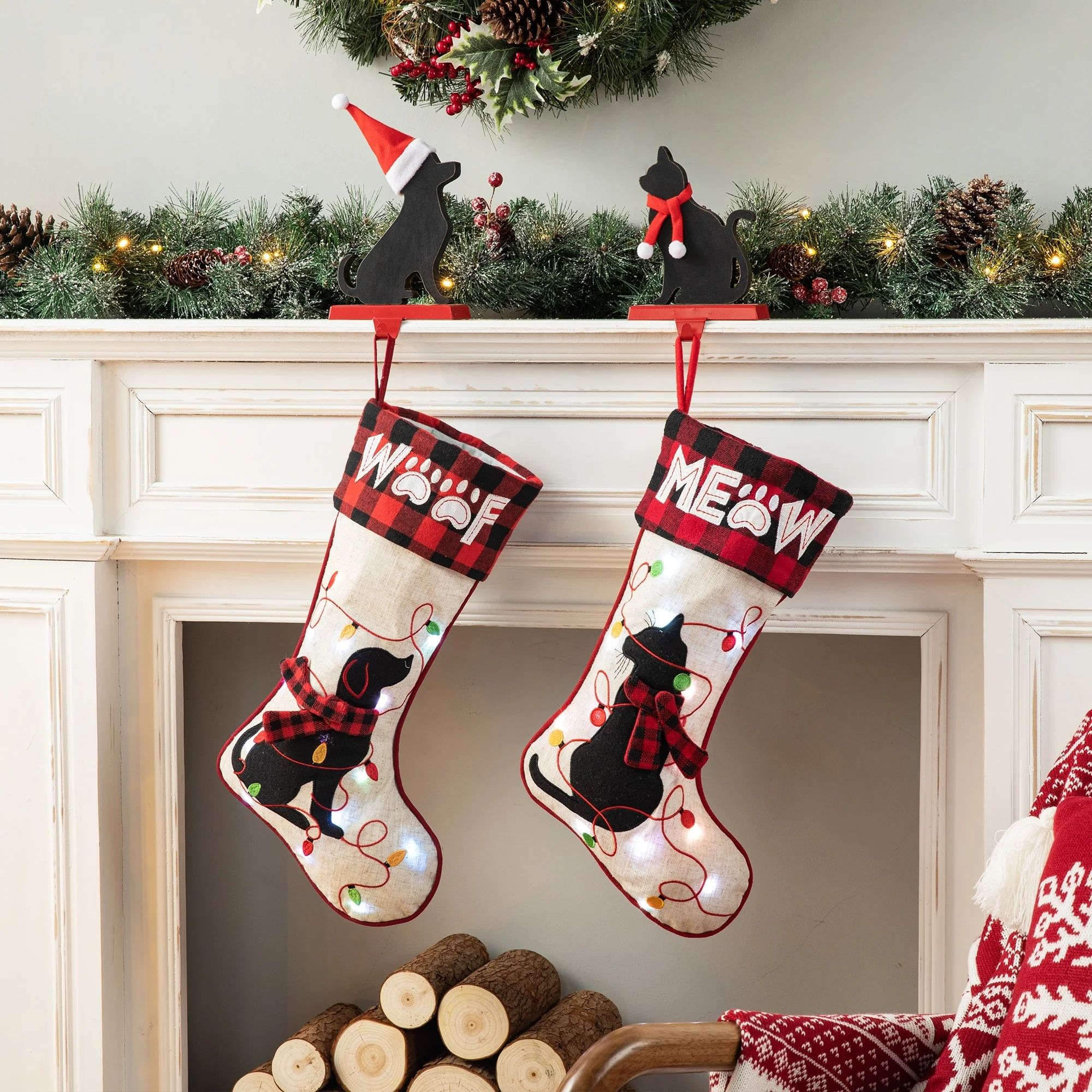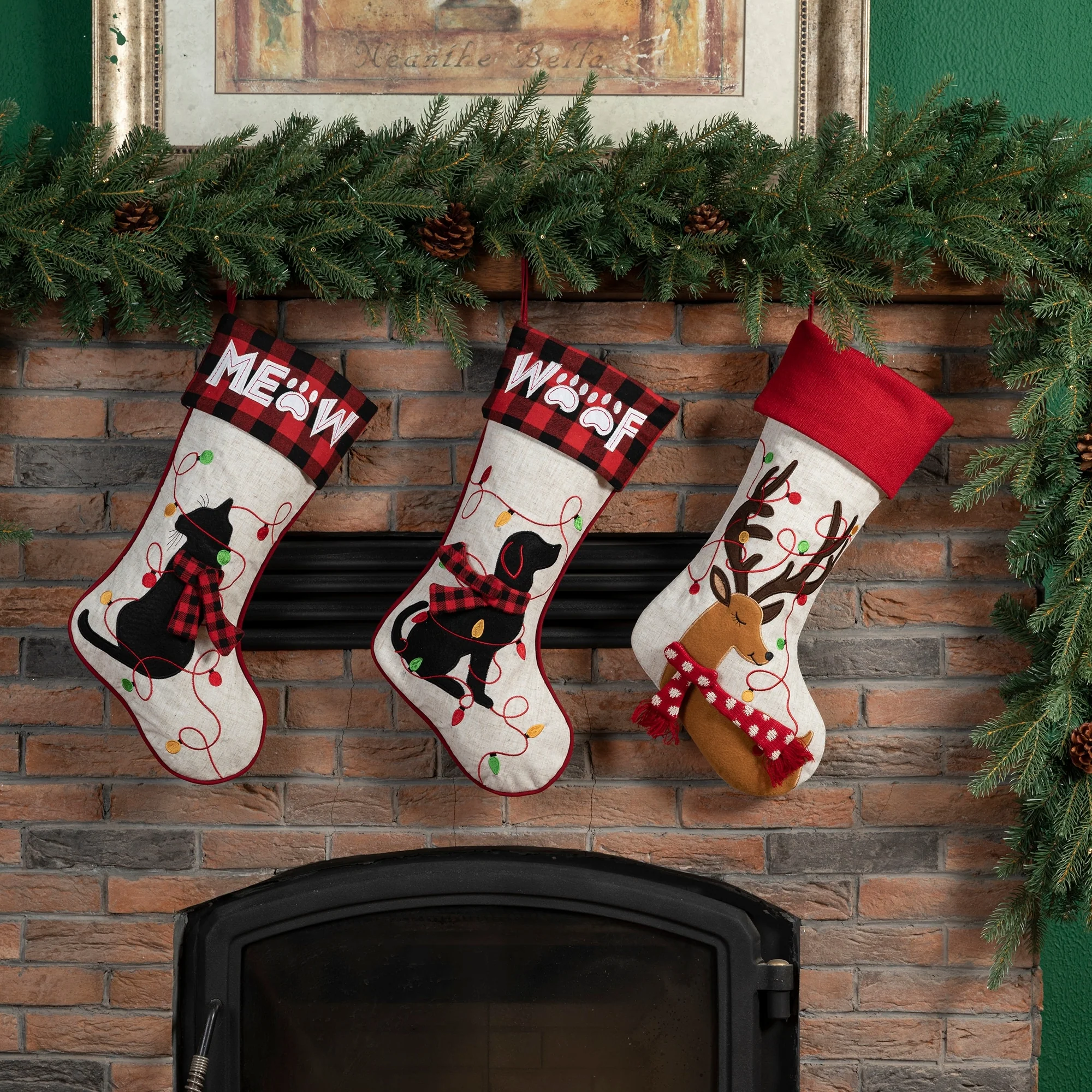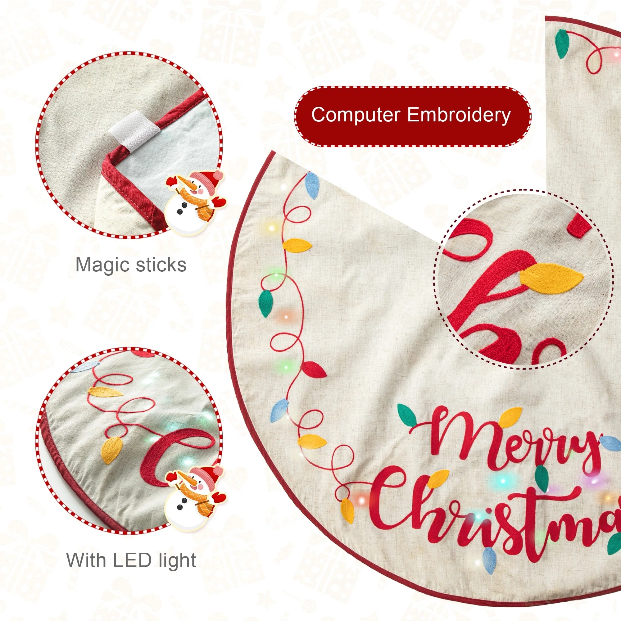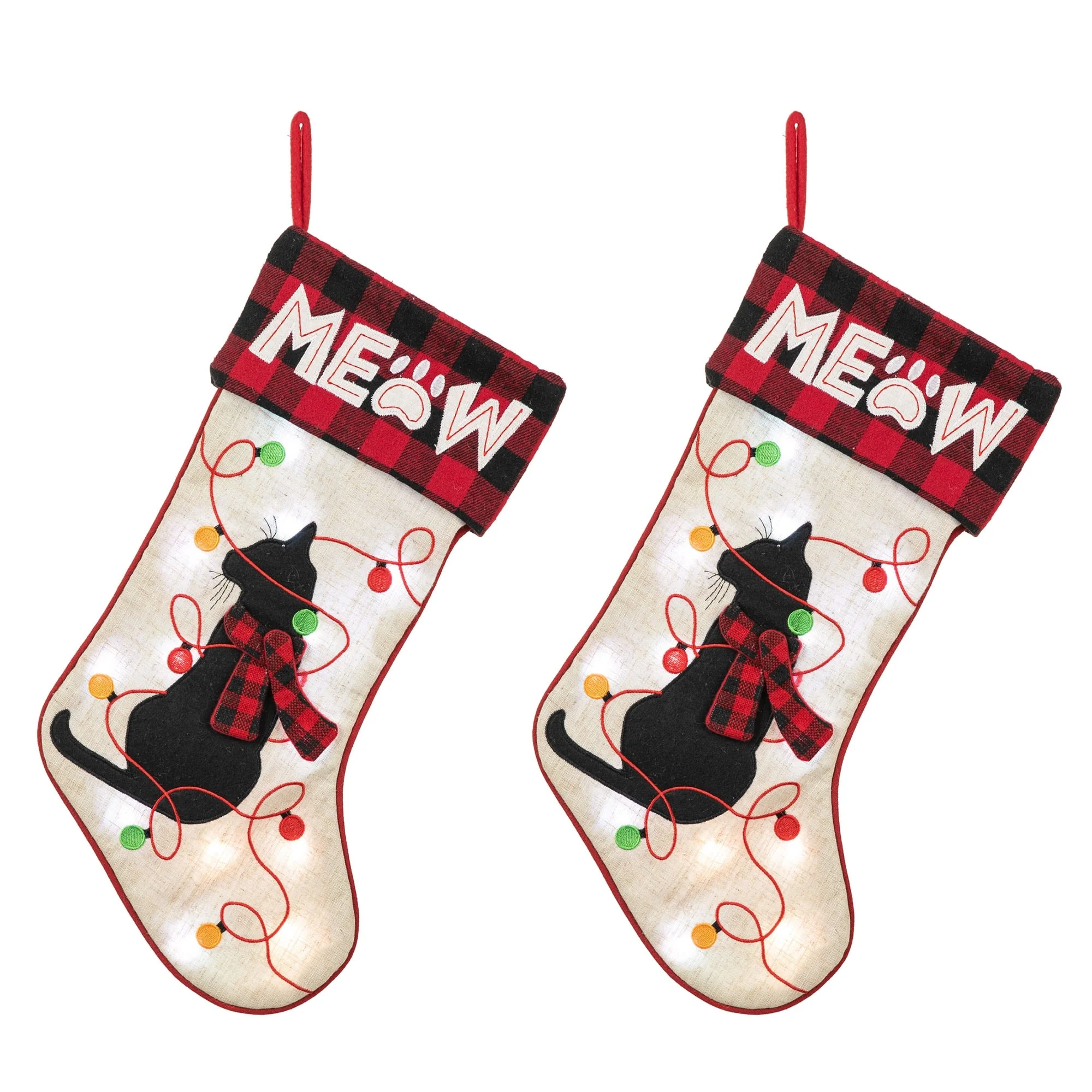 LED embroidered linen Christmas stockings are the special decorating part to welcome Santa. We provide the handcraft one for you to celebrate the very season in the year, with high quality material, you can experience the soft and smooth touch, and is safe for your younger kids.