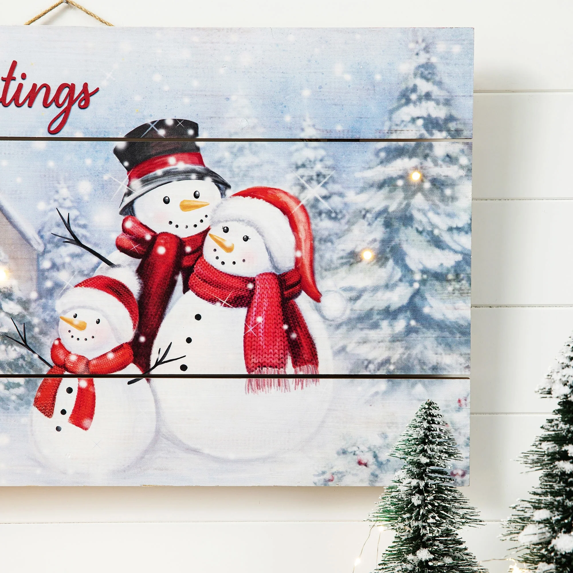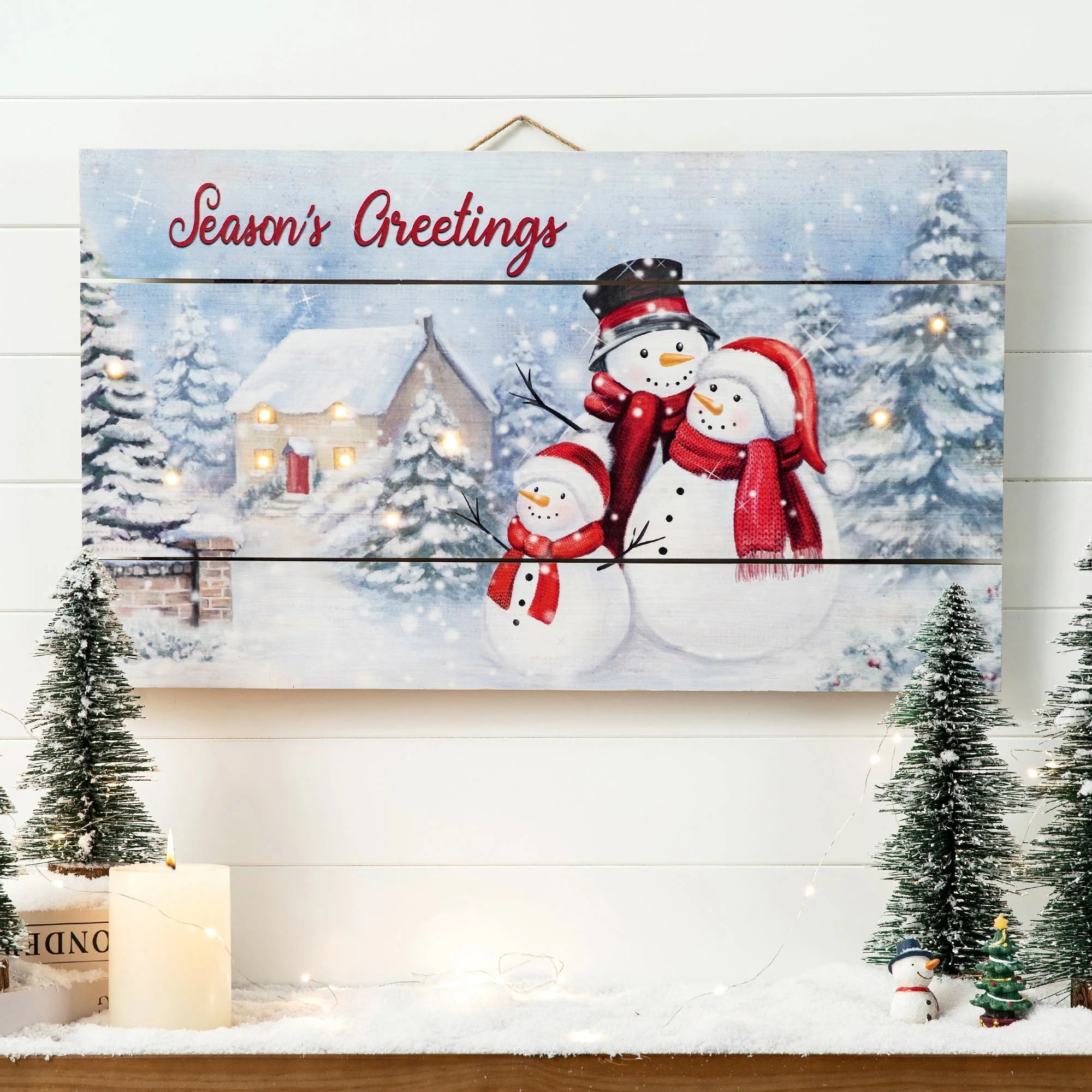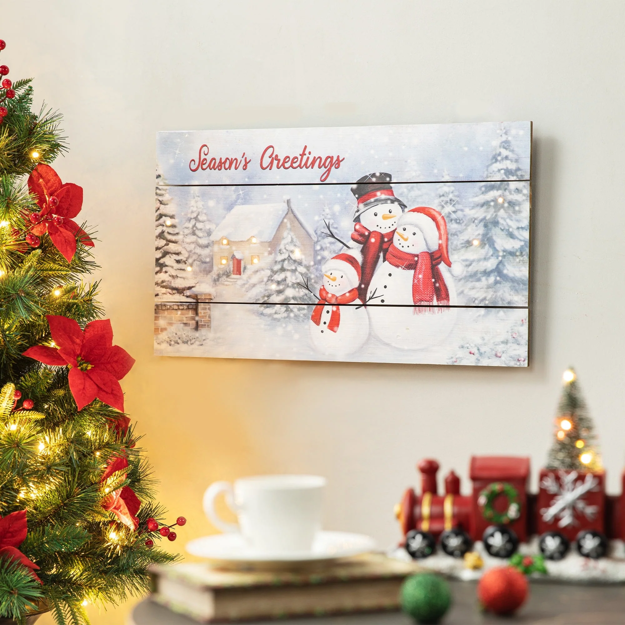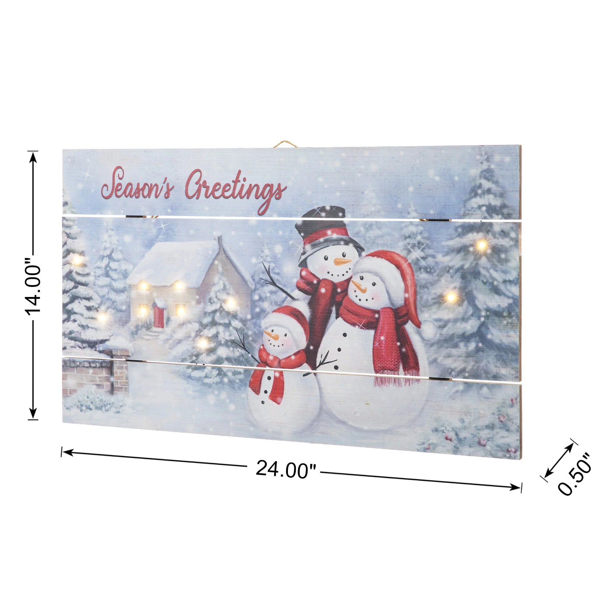 A delightful and festive addition to your holiday decorating, this wooden Santa Wall Decor features an old-fashioned Santa surrounded by snow-covered evergreens and a house. It reads, "Merry Christmas ", while 10 Snowflakes sparkle and shine warm white LED lights, bringing you a dense festival atmosphere.