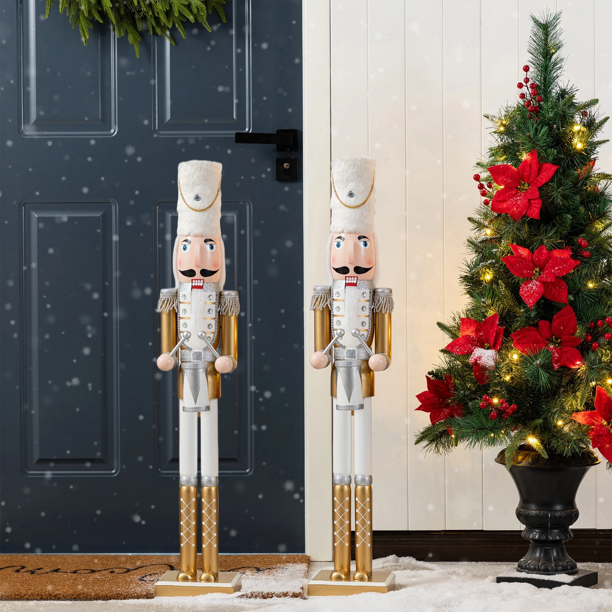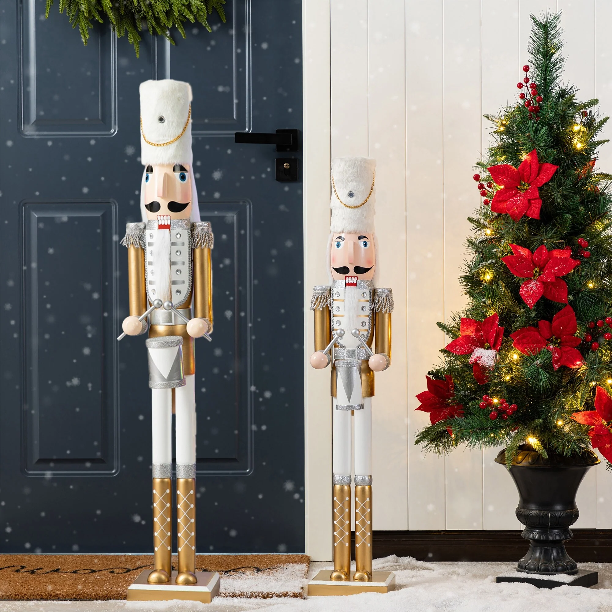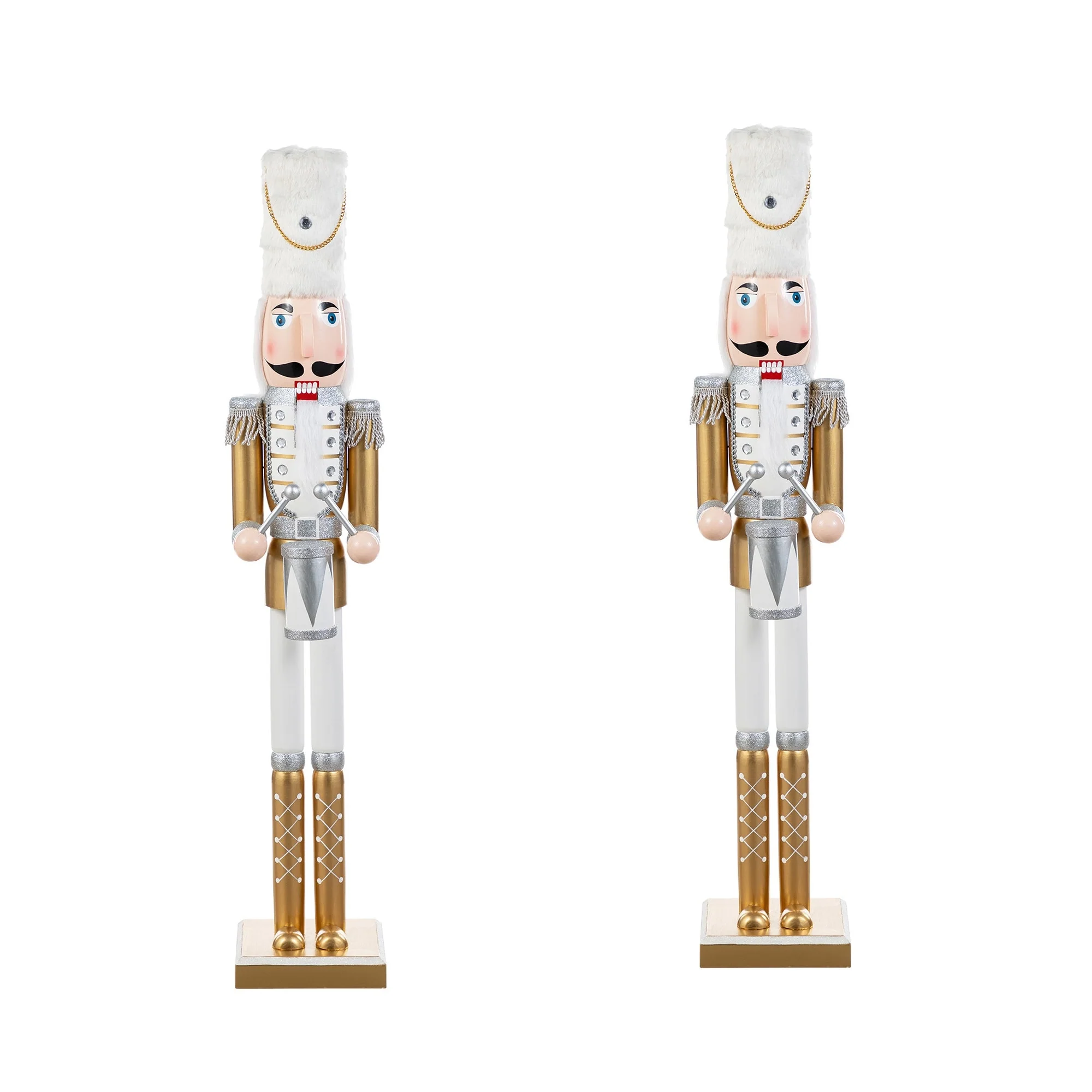 Our charming soldier nutcracker will brings the solemnity. Stands tall in his dress uniform, this nutcracker complete with stately hat and his drum sticks at the ready. Easily imagine magical celebrations with this grand soldier in attendance. Elegant and playful at the same time ensures a piece you will be proud to display for many years to come.