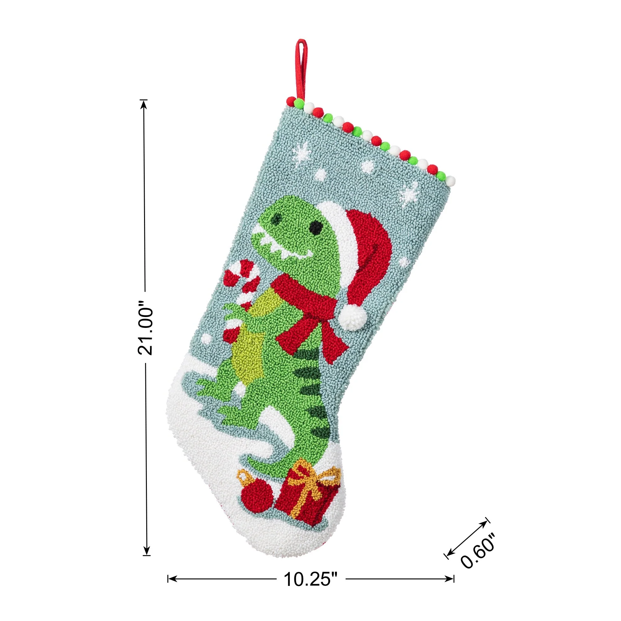 - Dinosaur Stocking: 21 inches wide x 10.25 inches deep x 0.60 inches thick