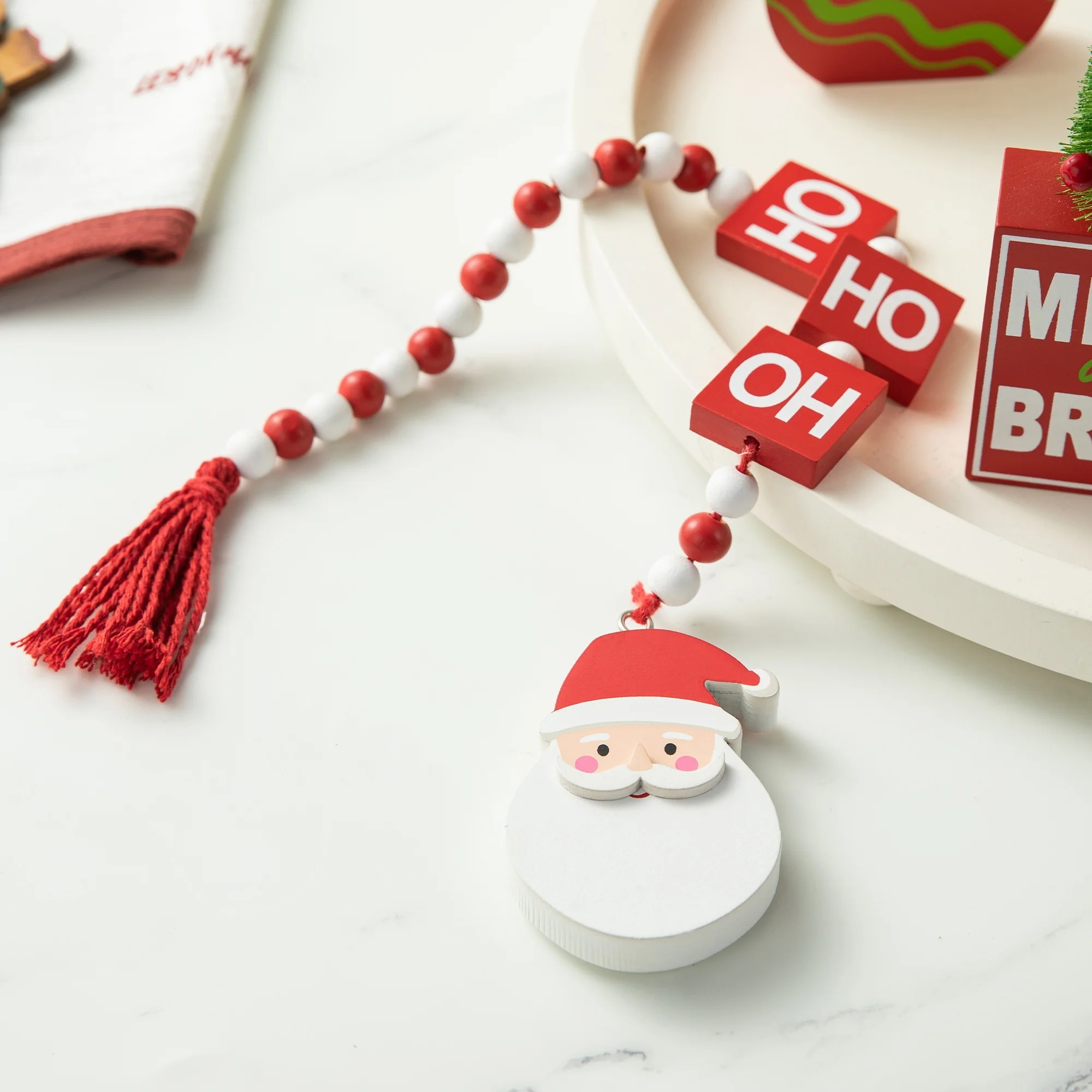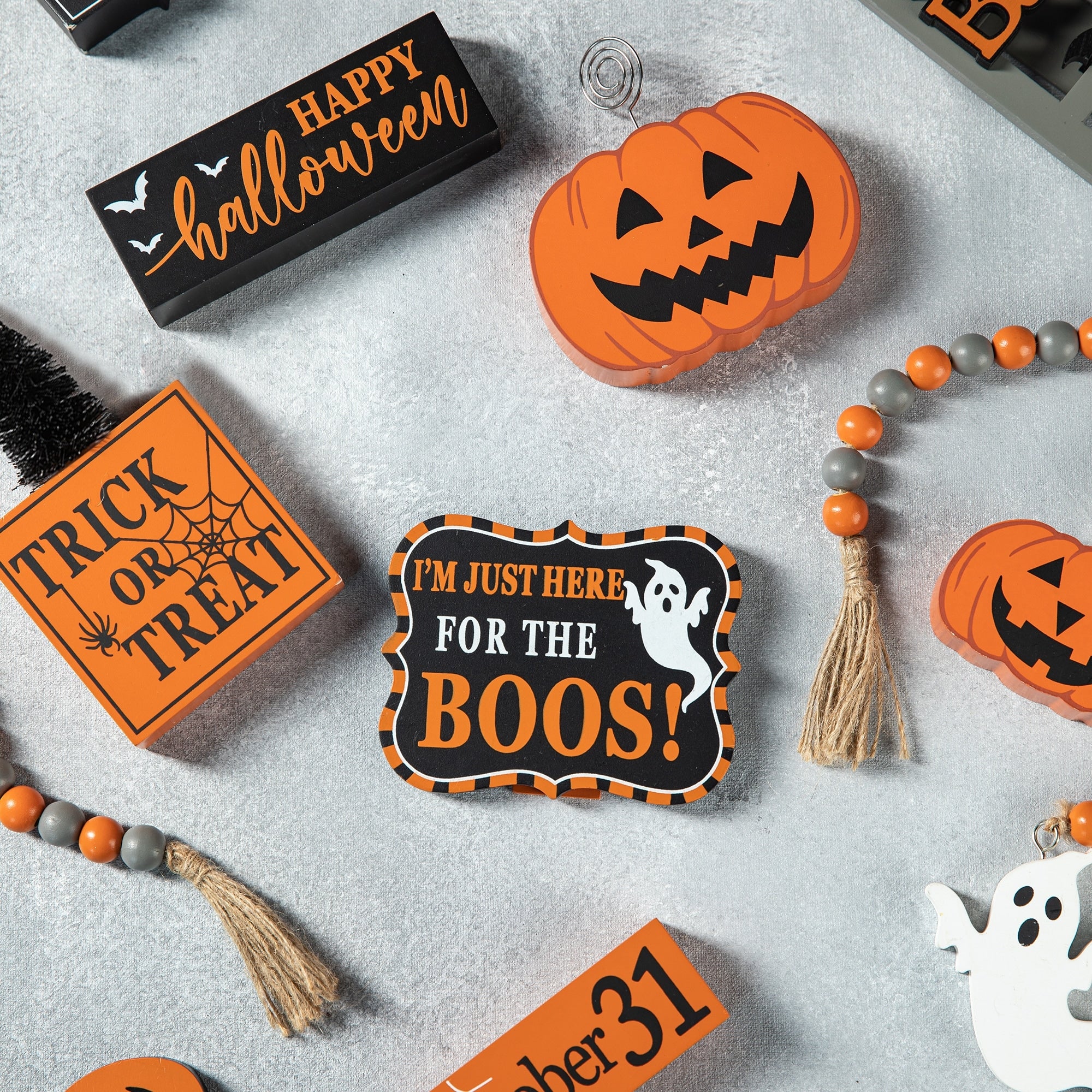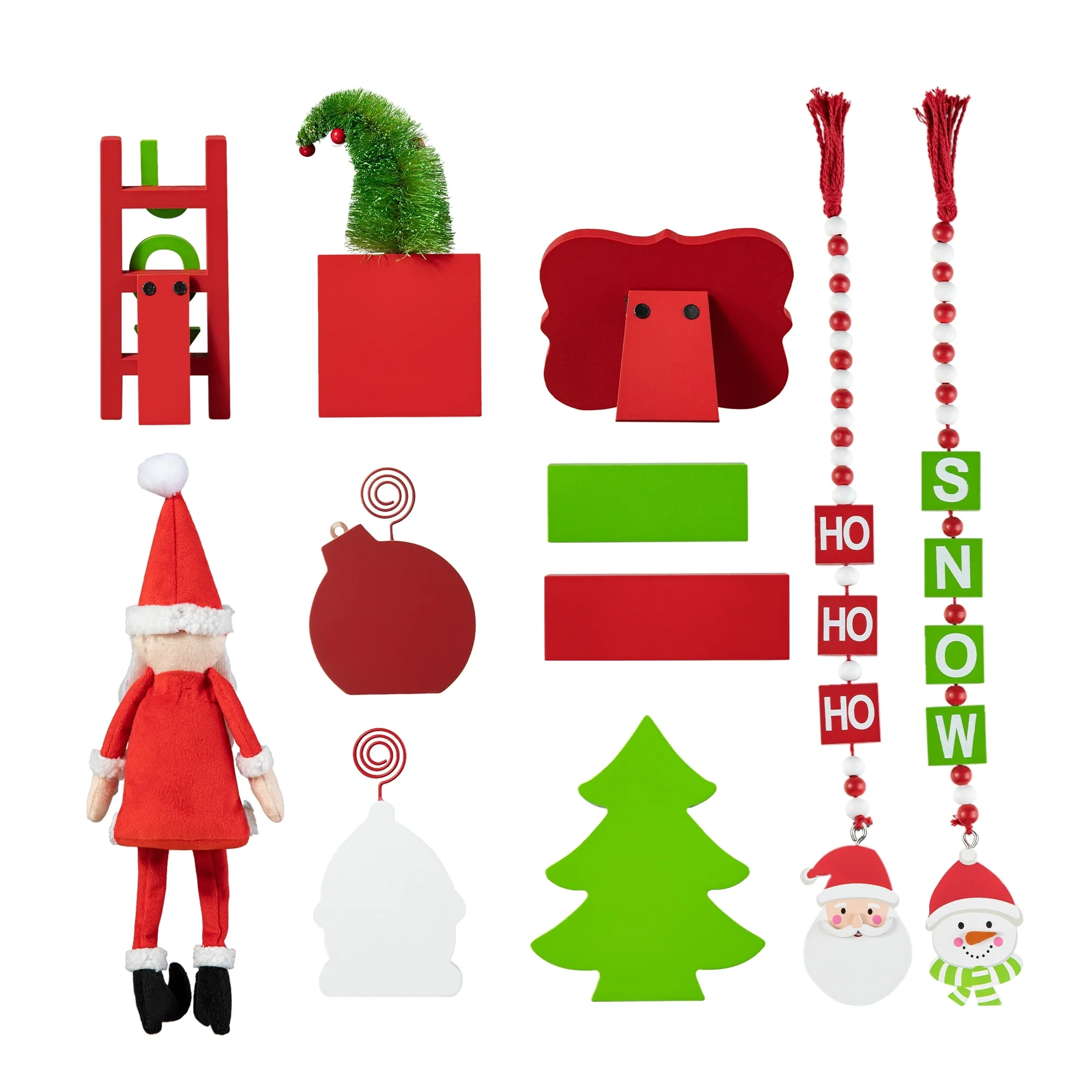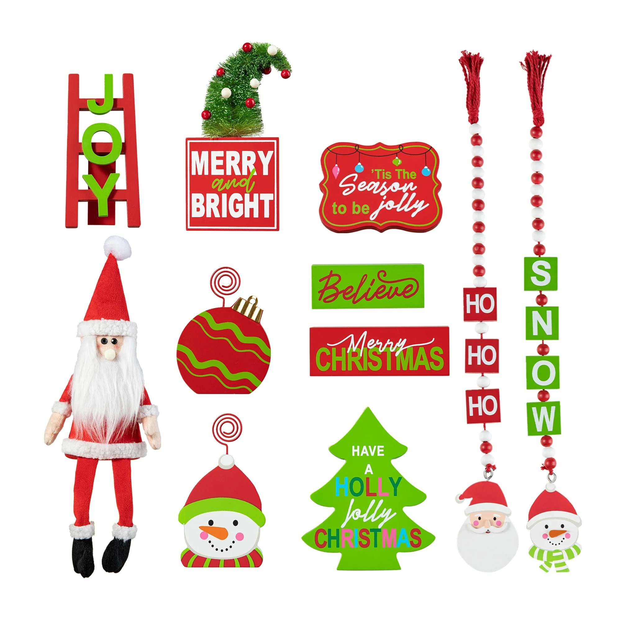 11 pieces Halloween/Christmas tiered tray decorations set is a perfect addition to your home decoration, which will bring a strong festival atmosphere to your home. You will get 1 x ladder, 7 x different wooden decor, 1 x fabric gnome and 2 x wood bead garlands.