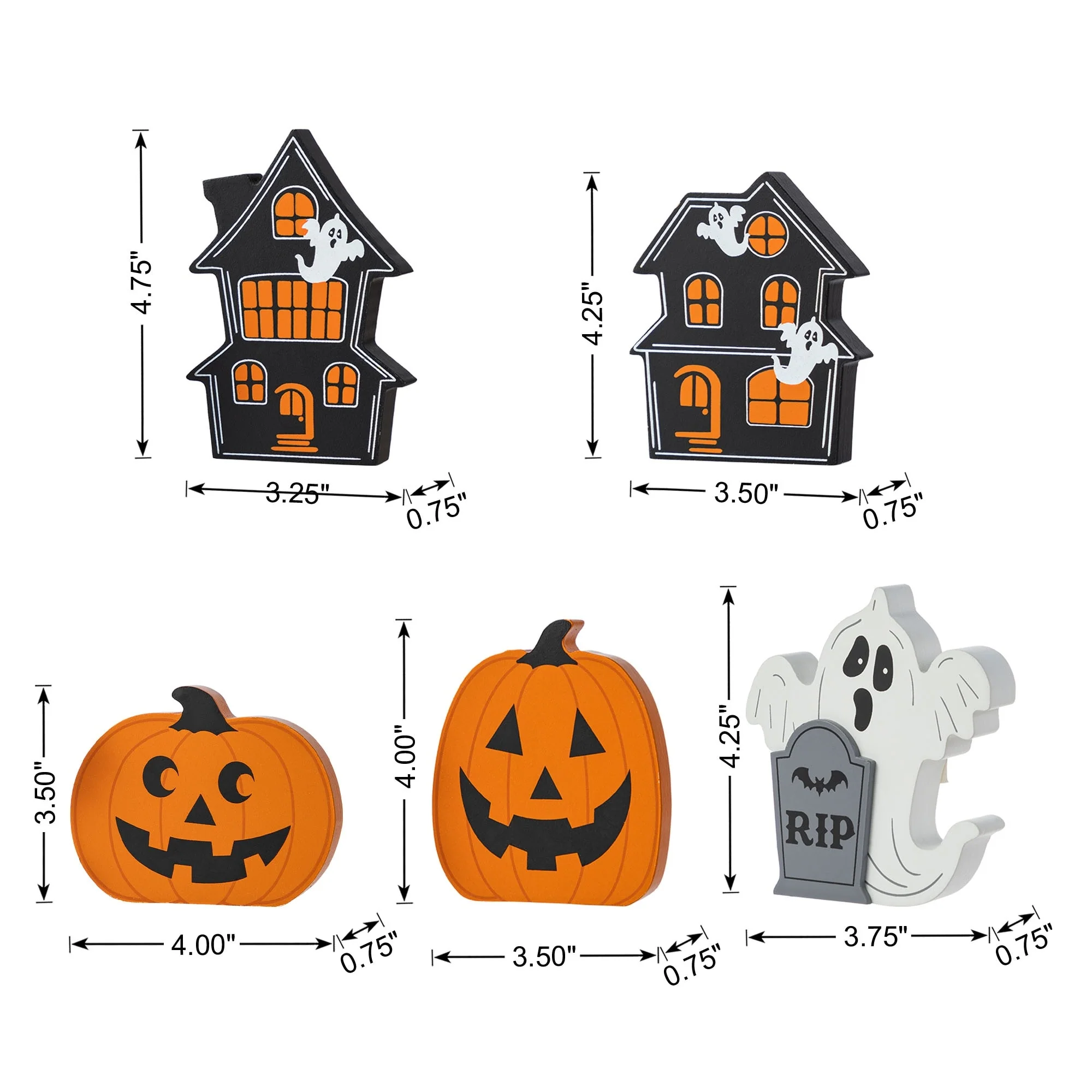 - Set of 5-Halloween: 4" W x 0.75" D x 4.75" H