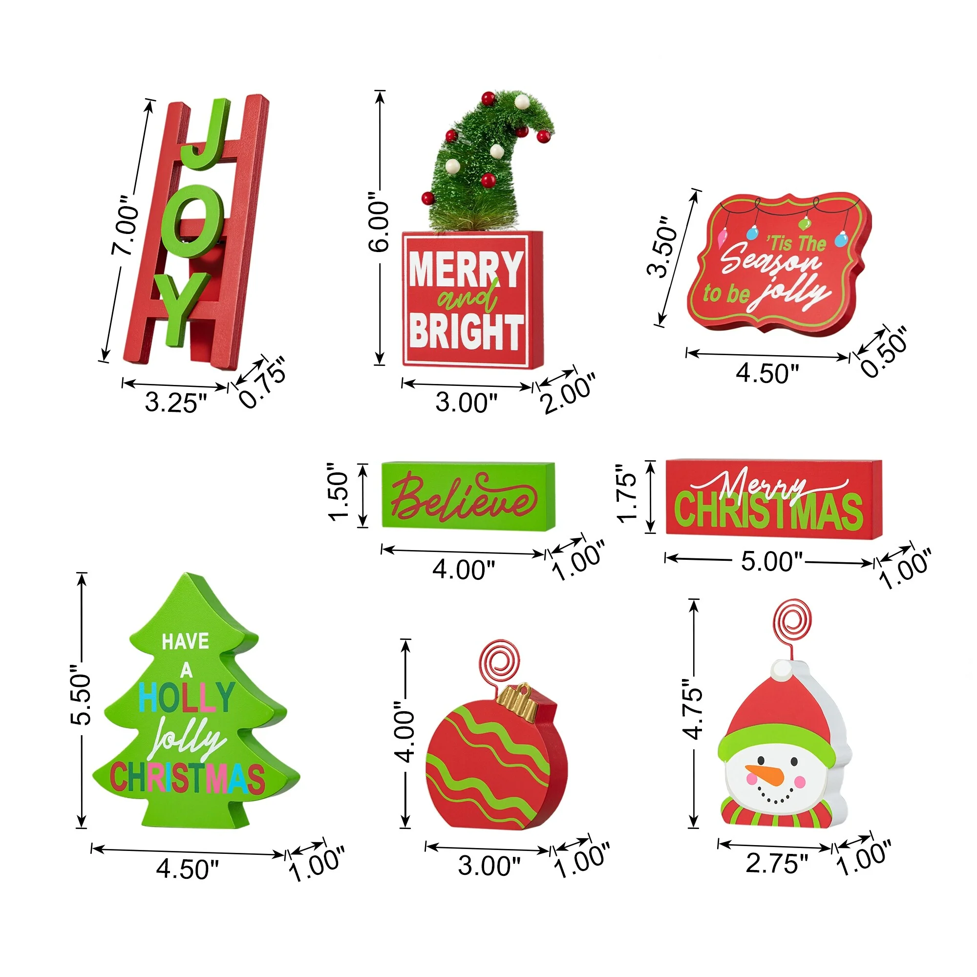 - Set of 11-Christmas: 5"W x 2"D x 19.5"H
