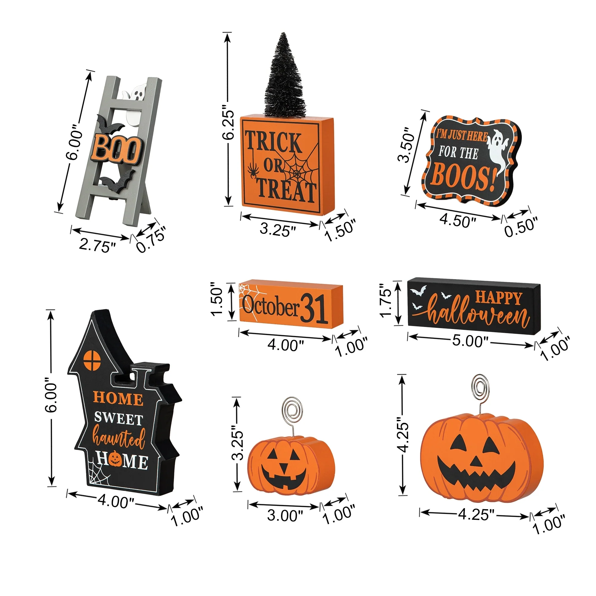 - Set of 11-Halloween: 6" W x 2.5" D x 22" H